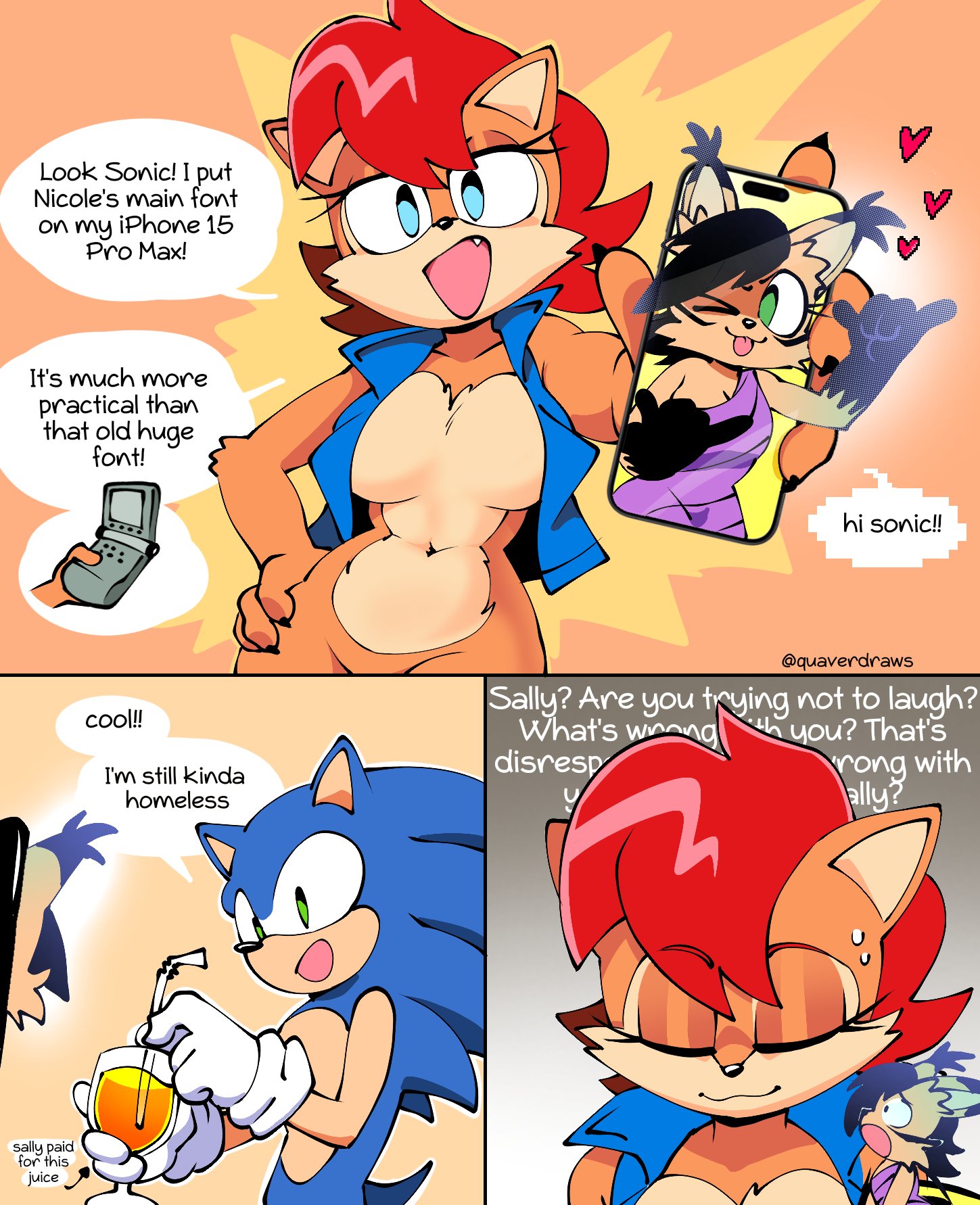 >>12989 Yeah he definitely doesn't need to be likable to be a great character. Oh man, the fanart where he's gatekeep, gasslight, girlbossing Elias is just great! Honestly, Penders' take on Geoffrey would've been fantastic if he'd done the reveal that he was a traitor. It'd recontextualize his hatred of Sonic as jealousy of a genuine hero and all the gross stuff with Sally as a morally compromised person trying anything just to feel something >>12994 I love how easily you can tell he's having fun drawing Sally >>12995 I hope the next issue comes out soon. Oh and you can buy the first issue from Lily Butler's ebay >>12997 >tails' shocked and slightly embarrassed expression >sally's angry yet intrigued expression, while sticking her butt out to assert dominance Oh boy, it's Sonknux time! >>12998 lmao, and now I'm thinking of which X-Men the Freedom Fighters would be Xavier: Max (overbearing, sometimes crazy, thinks he's in charge, secretly in love with Magneto/Locke) Jean: Sally (gets all the interesting plots, gets all the interesting boys) Cyclops: Geoffrey (official field leader of the movement as endorsed by Xavier/Max, everyone hates him, especially the fans!) Wolverine: (sexy, most popular character, all the fans want him to get with Jean/Sally despite what some of the writers think) Beast: Rotor (hot bara intellectual) Jubilee: Tails (adorable junior team member) Rogue and Gambit: Bunnie and Antoine (obviously!) Storm: Nicole (doesn't really fit, but they both fly around and electrocute things) X-Jet: Literally the Freedom Fighter Special