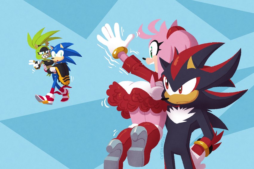 Also yeah as mentioned characters interacting that really don't get to is something that should happen more, like Shadow being oddly pals with the Chaotix cause of the events of his own game would be neat, Omega working with Amy who kinda resents him for not being Gamma a lil but learns to get on or Wave having to hire Vector for a job she doesn't want any of her team aware of and the two pissing the other off more and more.