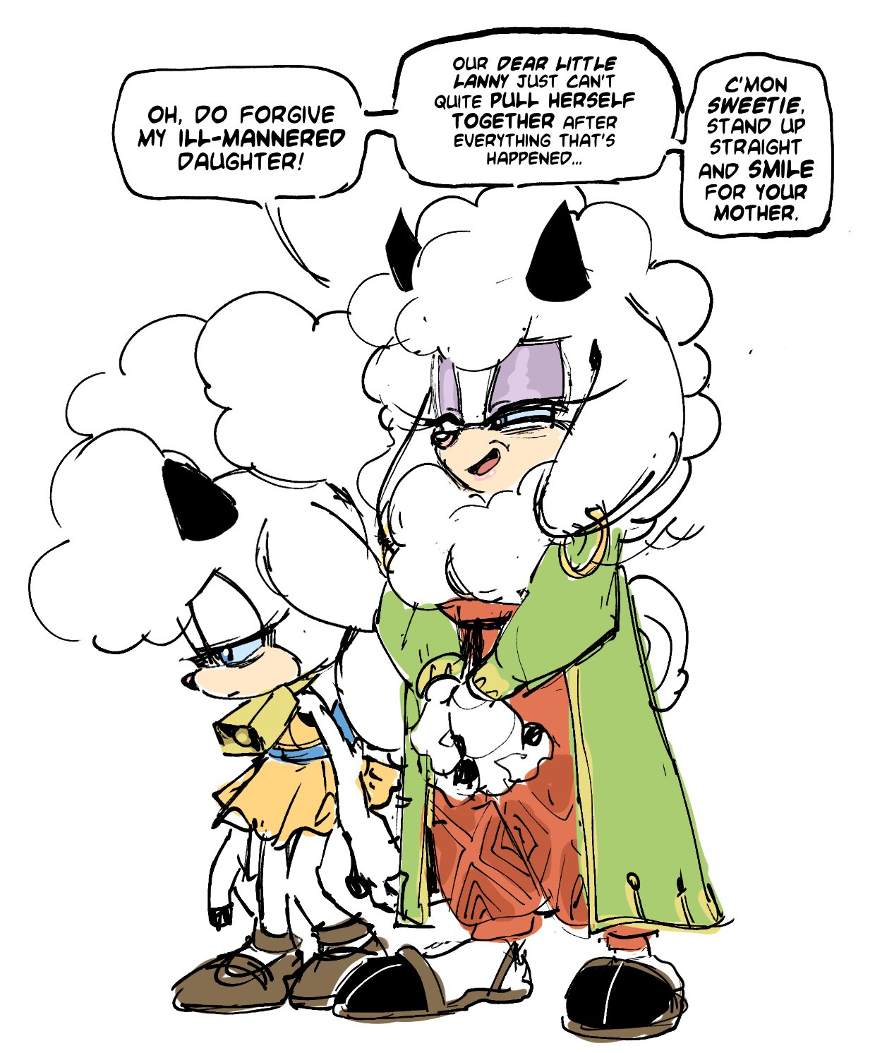 https://twitter.com/AdamBryceThomas/status/1782685051723080138 From ABT therefore Lanolin's canonical mother that will never be shown in the comic. Maybe. Not sure if IDW OCs are allowed to have family members. Though I know that background-ish characters have had family members like that park ranger bear and his son that Tangle and Belle rescued. Remember Belle? They should bring her back. In Pog form!