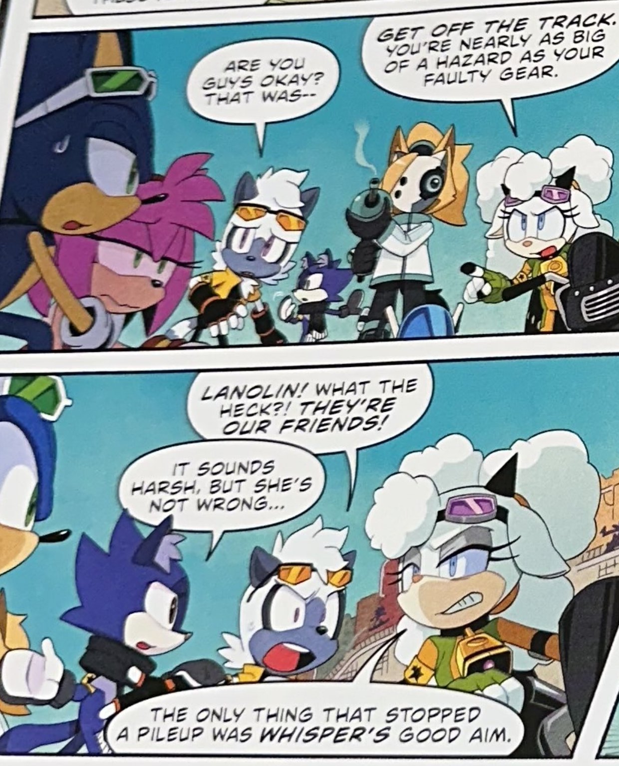 It's such a shame that Lanolin did not turn out to be the Sally expy for IDW. I would've written her the same way and given her and Sonic the most intense friendly tension that even if there wasn't anything romantic in the comic, the fandom would ship them to hell and back. It'd be the most eyebrow raising friendship. Every time you see Sonic, he's with her and you wonder what they were doing before. And of course there'd be banter and swapping smug looks.