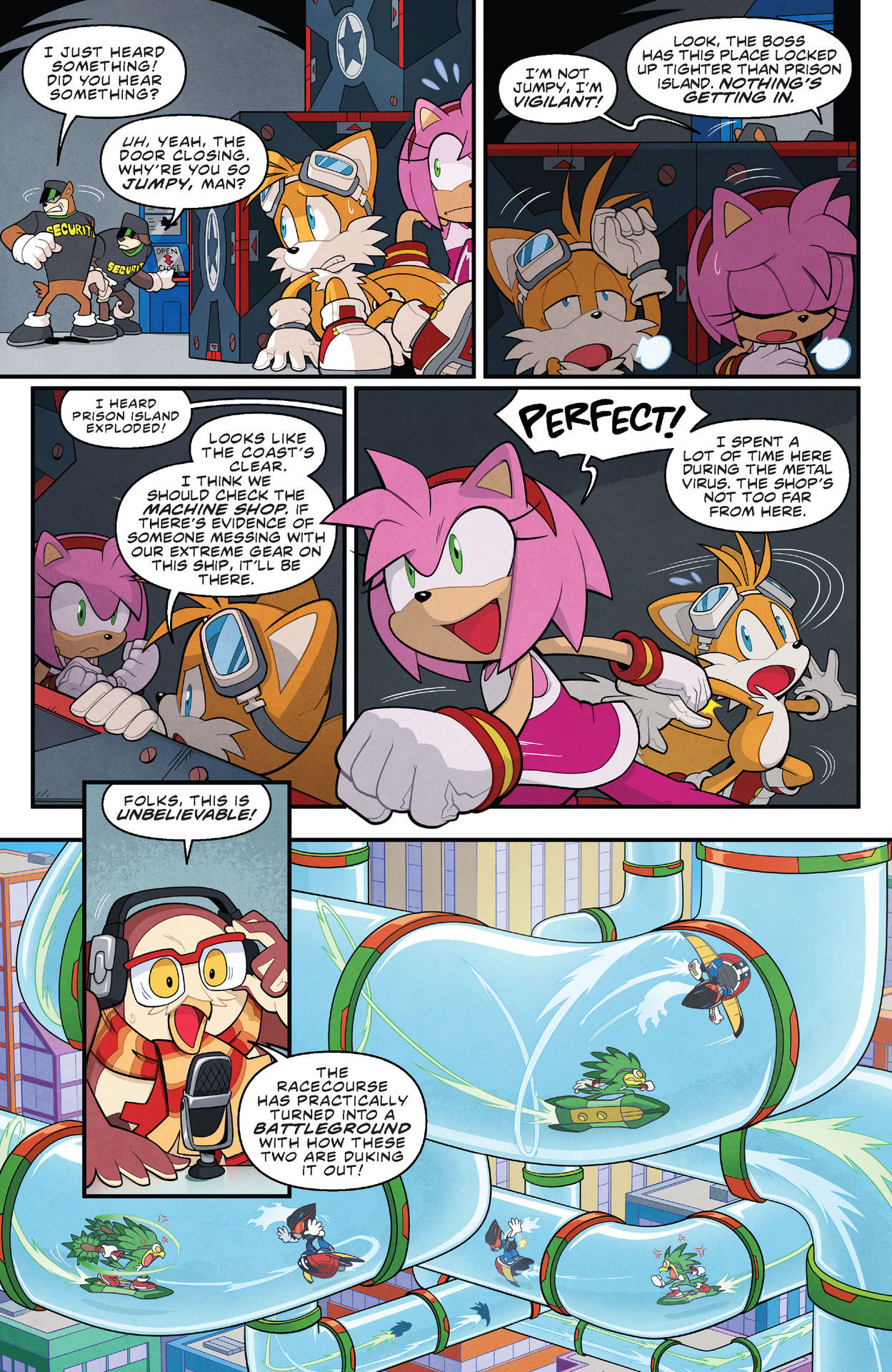>>5013 While these evil security guards coming out to stop Sonic from racing in his disguise, our real heroes sneak aboard and go snooping around as usual.