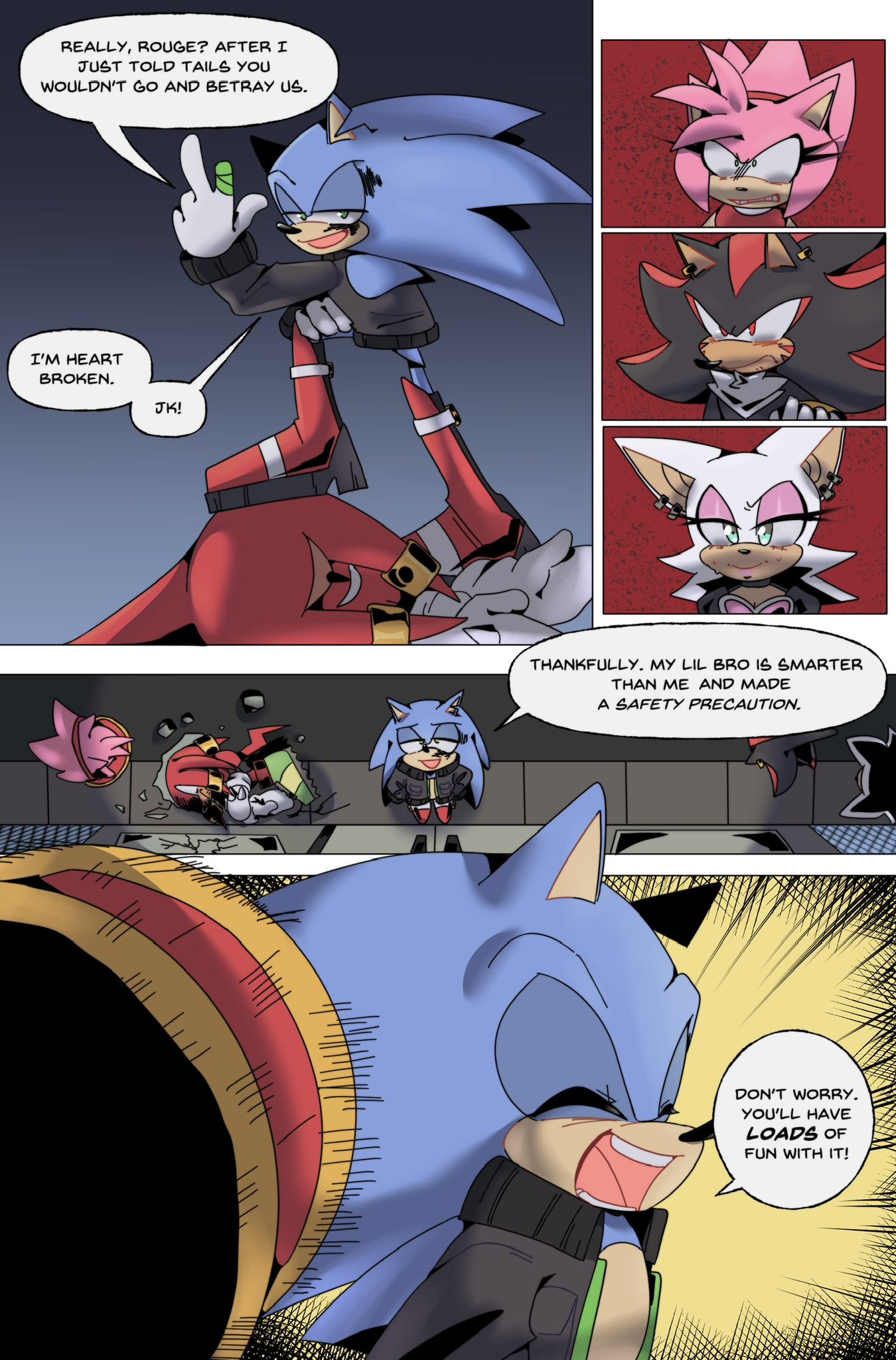 >>20738 Tails sends Sonic to go investigate some mysterious readings, but the art style changes and Sonic gets totally stacked between pages 10 & 12. Also, he inhales some purple gas, gets knocked unconscious, gains strange markings and has somehow caused his slutty evil(?) twin Dark to appear