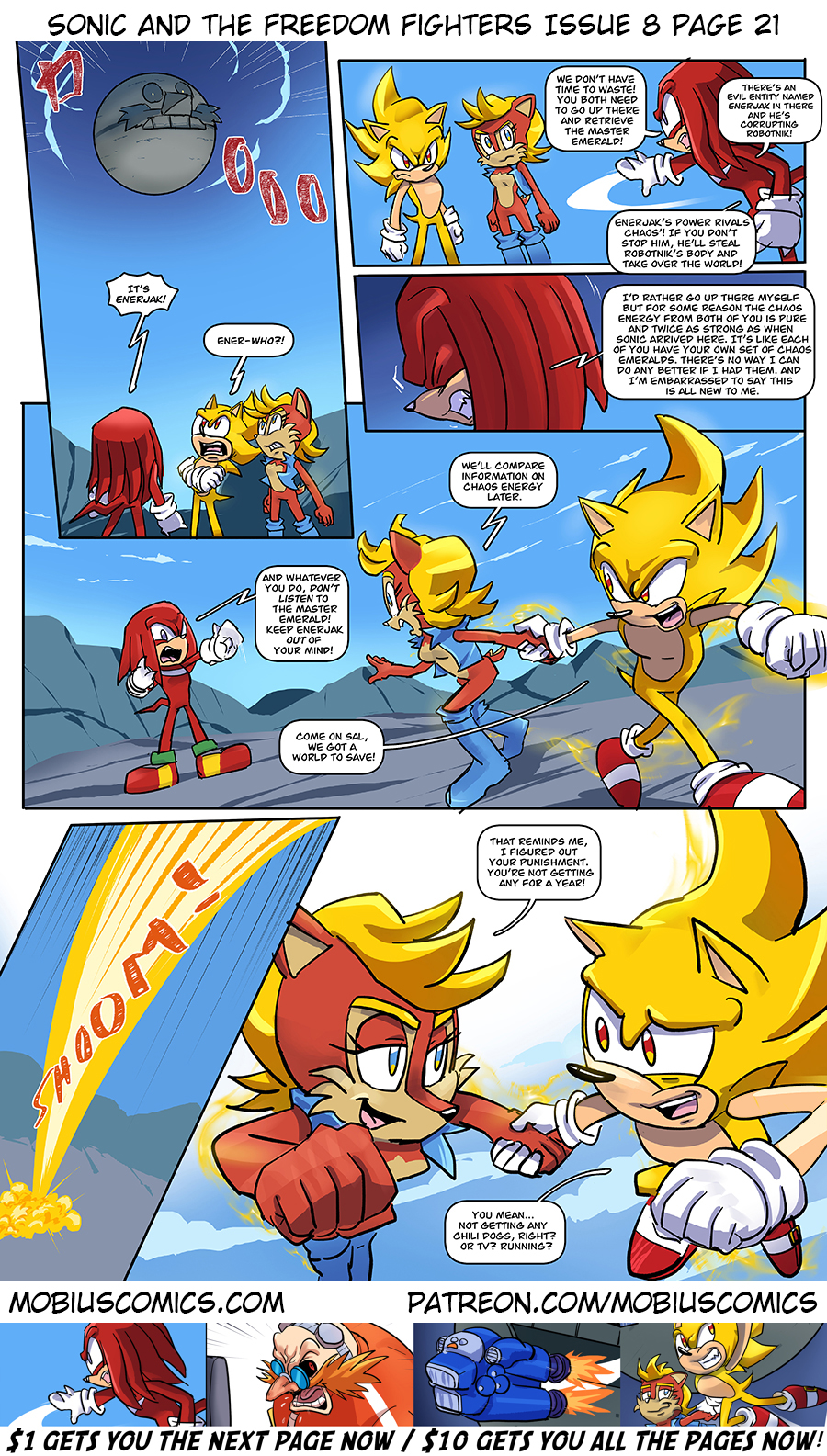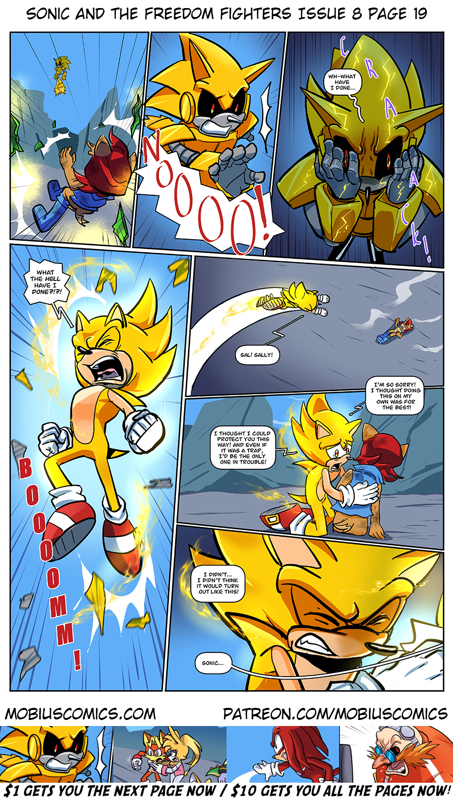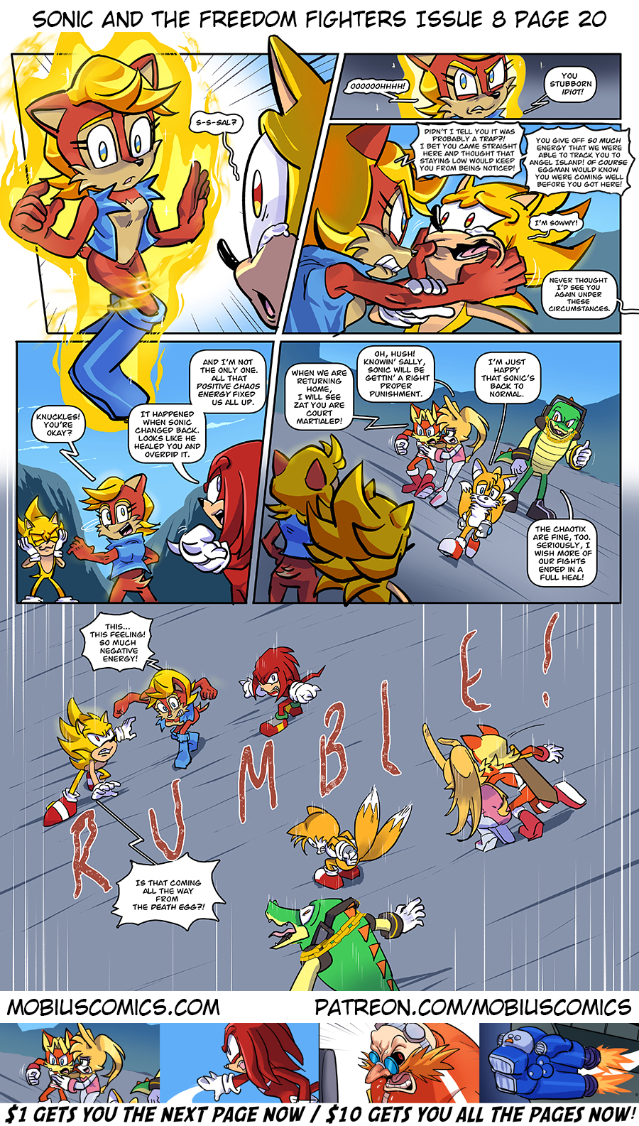A convenient mass heal for everyone but now it’s time for the real final boss of this arc! What’s going on up there? Will Super Sonic and Super Sally be able to stop whatever it is?