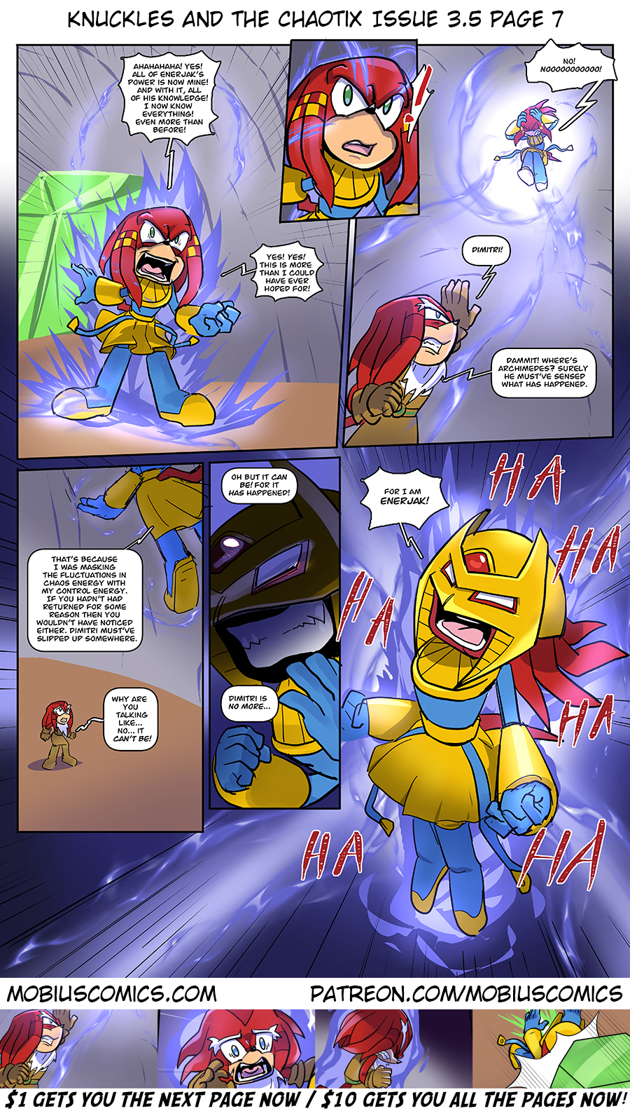 >>21397 Looking back, it's flesh colored in almost all the panels, actually is pink in a few >>21398 This really is a great setup. I can't believe Dimitri and his brother originally argued about whether they should go through with their plan to land Angel Island without council approval. It lands without incident several times in S3&K! >>21399 Locke trying his best to do the Sonic Adventure pose >>21400 Yeah, it's a much better way to introduce the conflict, even if you don't have to memorize their family tree! I'm not so sure I'd call Dimitri evil here, nor in Archie. He's definitely being duplicitous, but ultimately he thinks he can get one over on Enerjak and use his power for good
