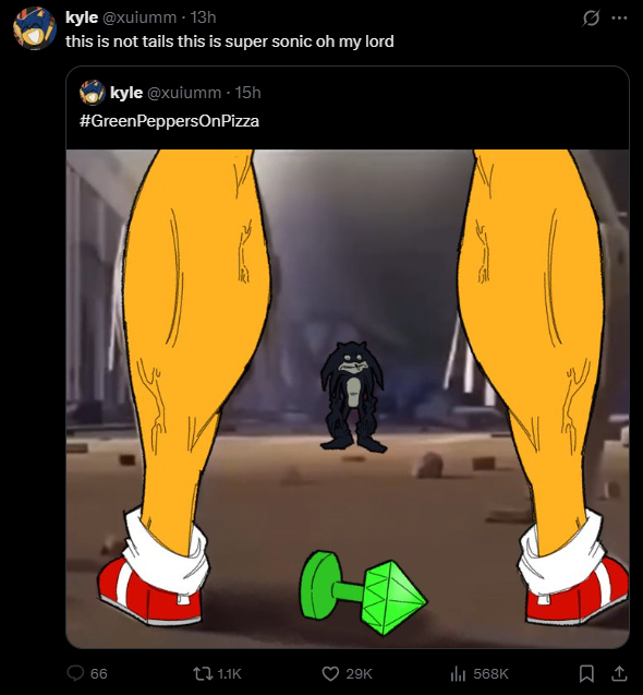 https://x.com/TheNam3IsX/status/1970201430326944245 Tangle was the first IDW OC and yet there's never been that much art of her being shipped with Sonic, even before Tangle got chained up to her.