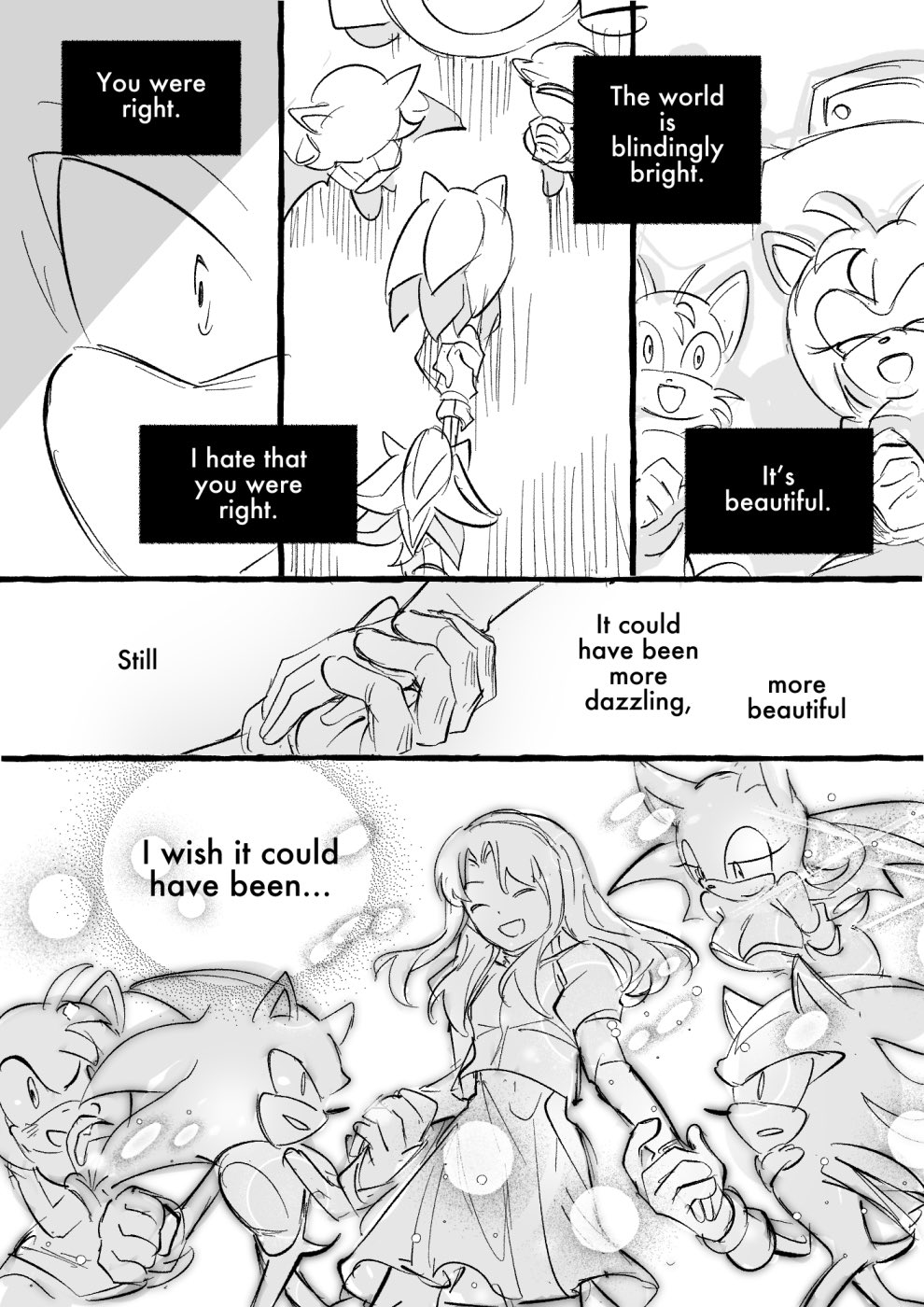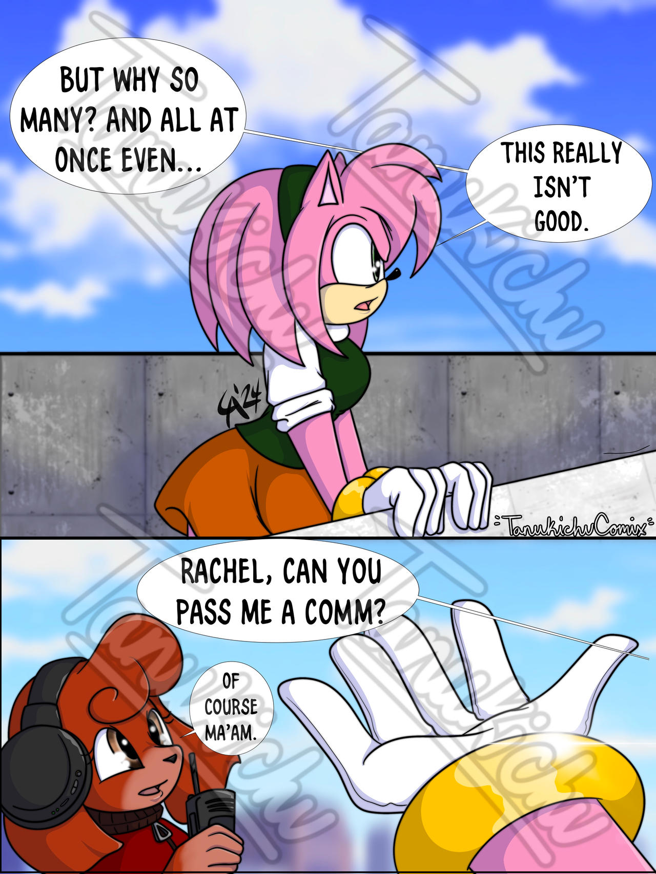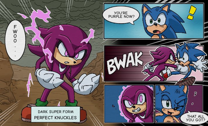 >>22389 A short comic with bad future Sage and Metal Sonic. >>22382 I've come to realize how many Sonic fancomics don't even try to really tell a story these days aside from shipping or gags.