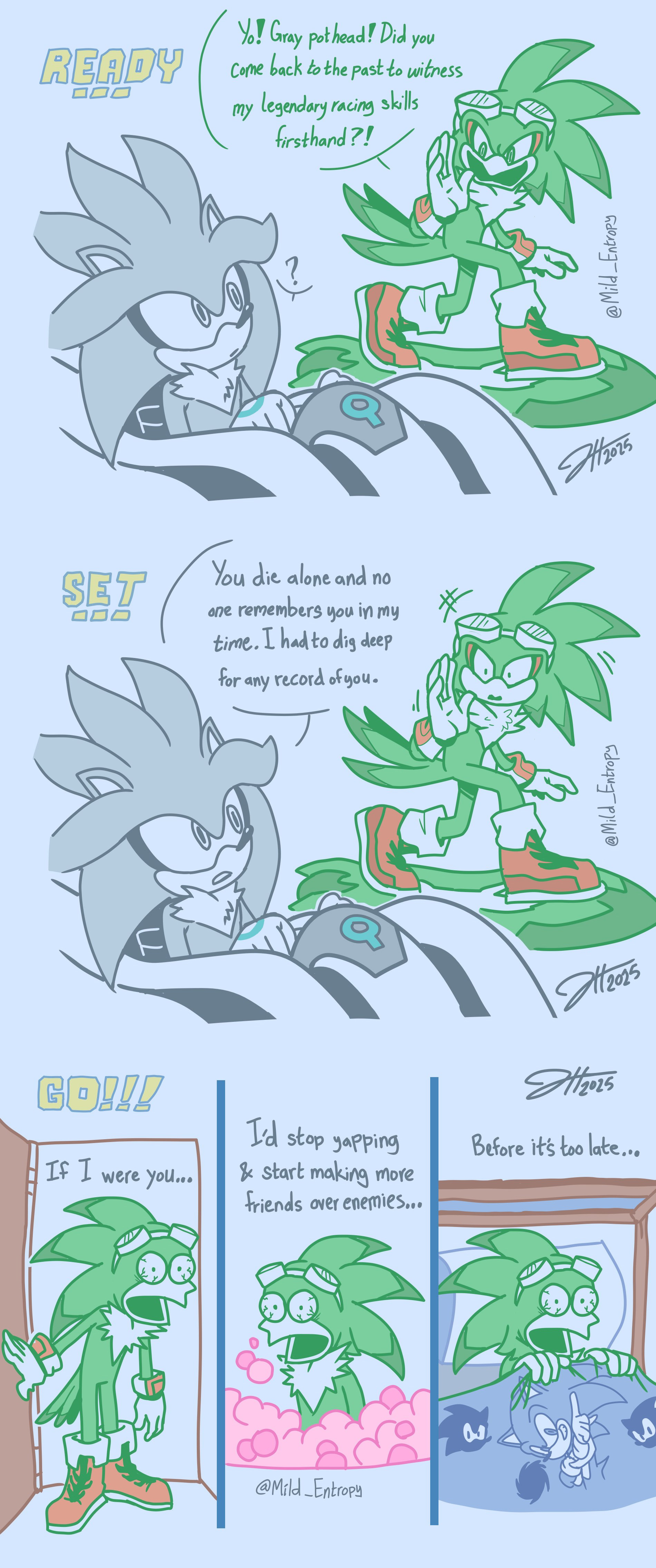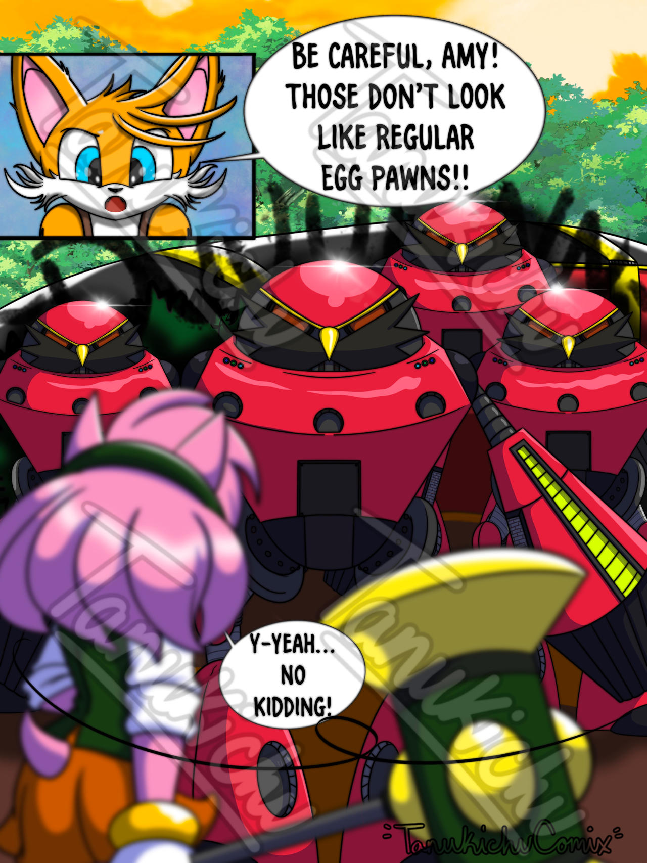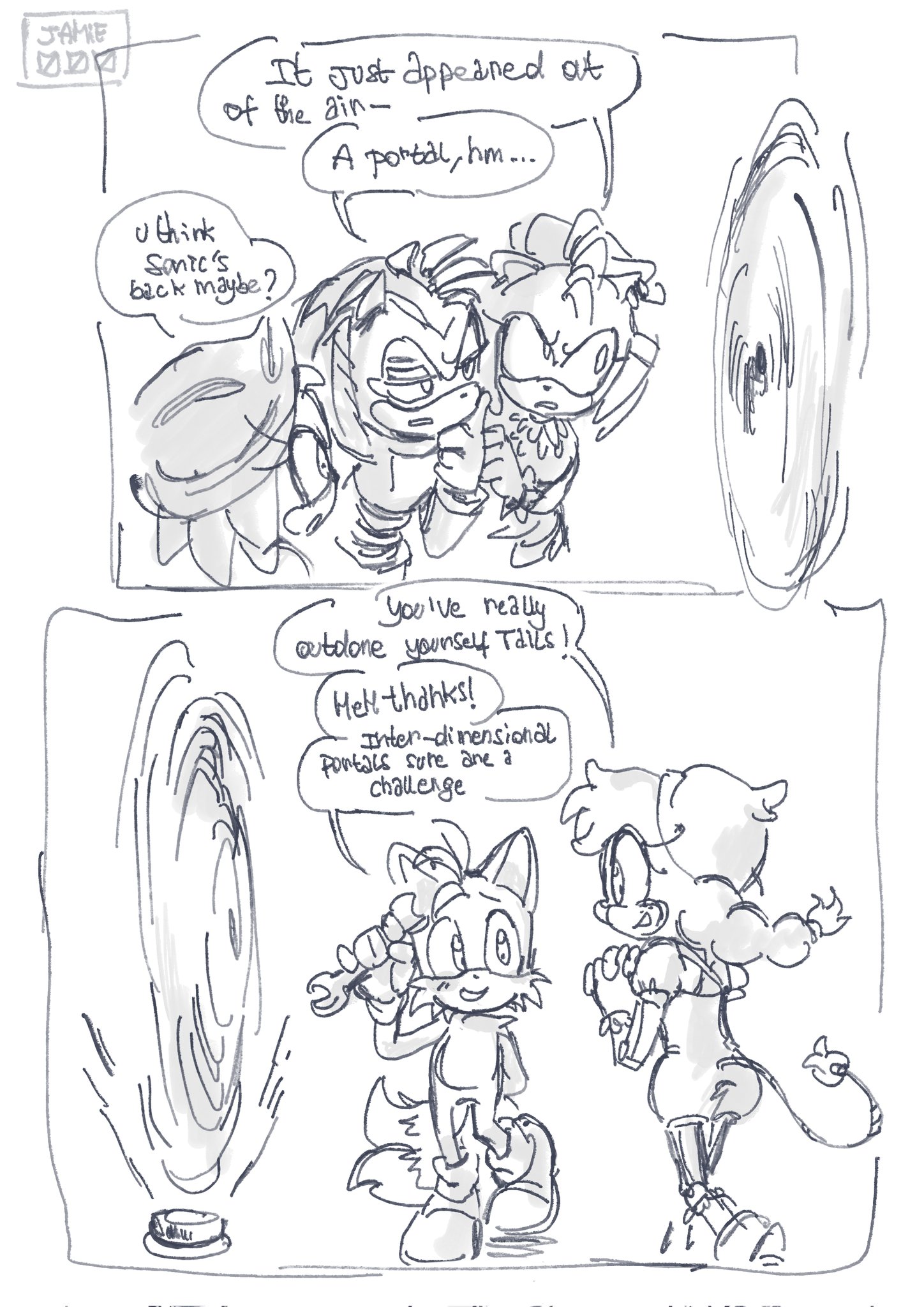 >>22389 A short comic with bad future Sage and Metal Sonic. >>22382 I've come to realize how many Sonic fancomics don't even try to really tell a story these days aside from shipping or gags.