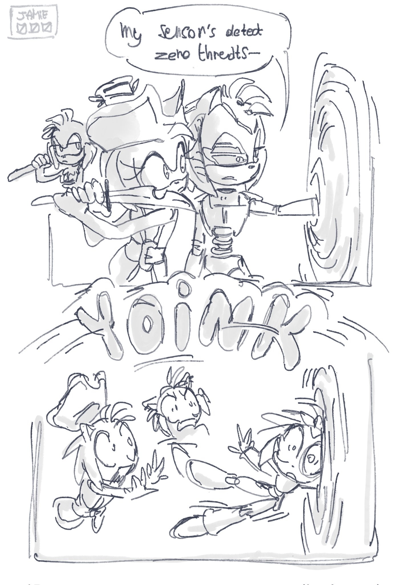 >>22175 >Tendril attack! Oh my! >>22179 >Is spring here as well? Still holding out for a continuation ;_; >>22183 >Well they have their wet noodle comic to enjoy now. It's almost impressive how thoroughly they've removed all the fun from that comic. Rough and Tumble are literally the only characters left that are allowed to have fun >>22184 >I do wonder if there's something against mobians with powers or being stronger than normal unless they're specific characters like Surge and Kit. My guess is it's something to do with it being set in the aftermath of Sonic Forces. None of the OCs are much good at fighting without the wisps