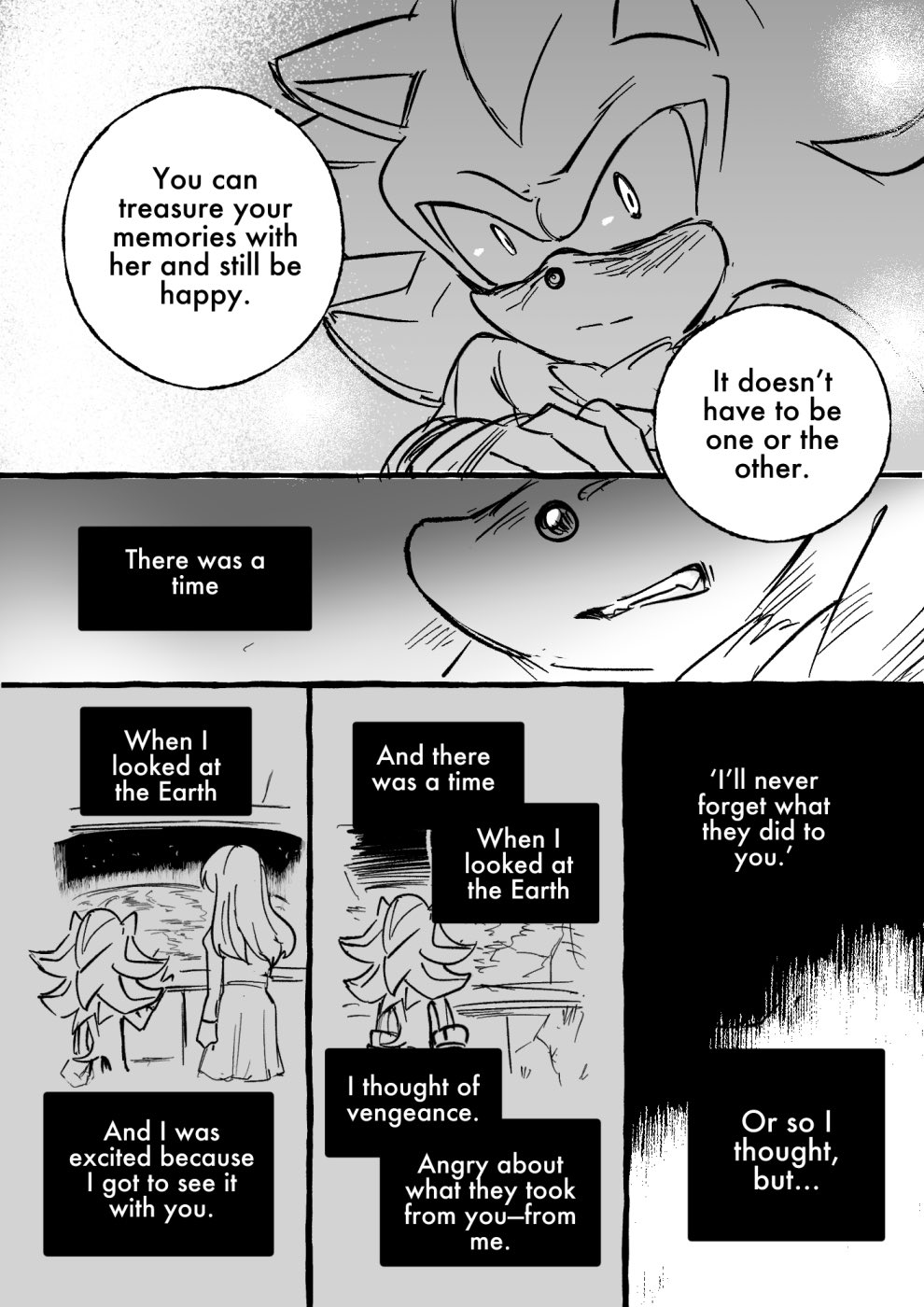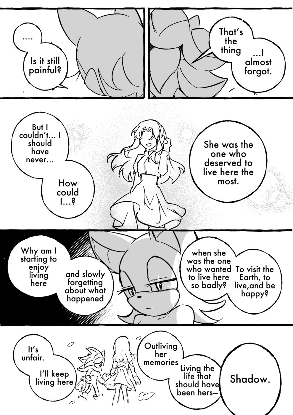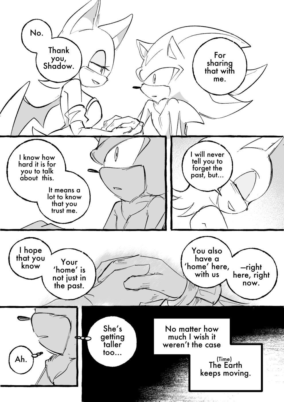>>21603 Today I have a bunch of stuff from twitter I want to clear out but first let's go into the MUH RIA cave. Because them kids on twitter love stories about Shadow and Maria and doing them in black and white. But this time we have Rouge and even some appearances of Omega! This is Those Who Yearn for the Earth!