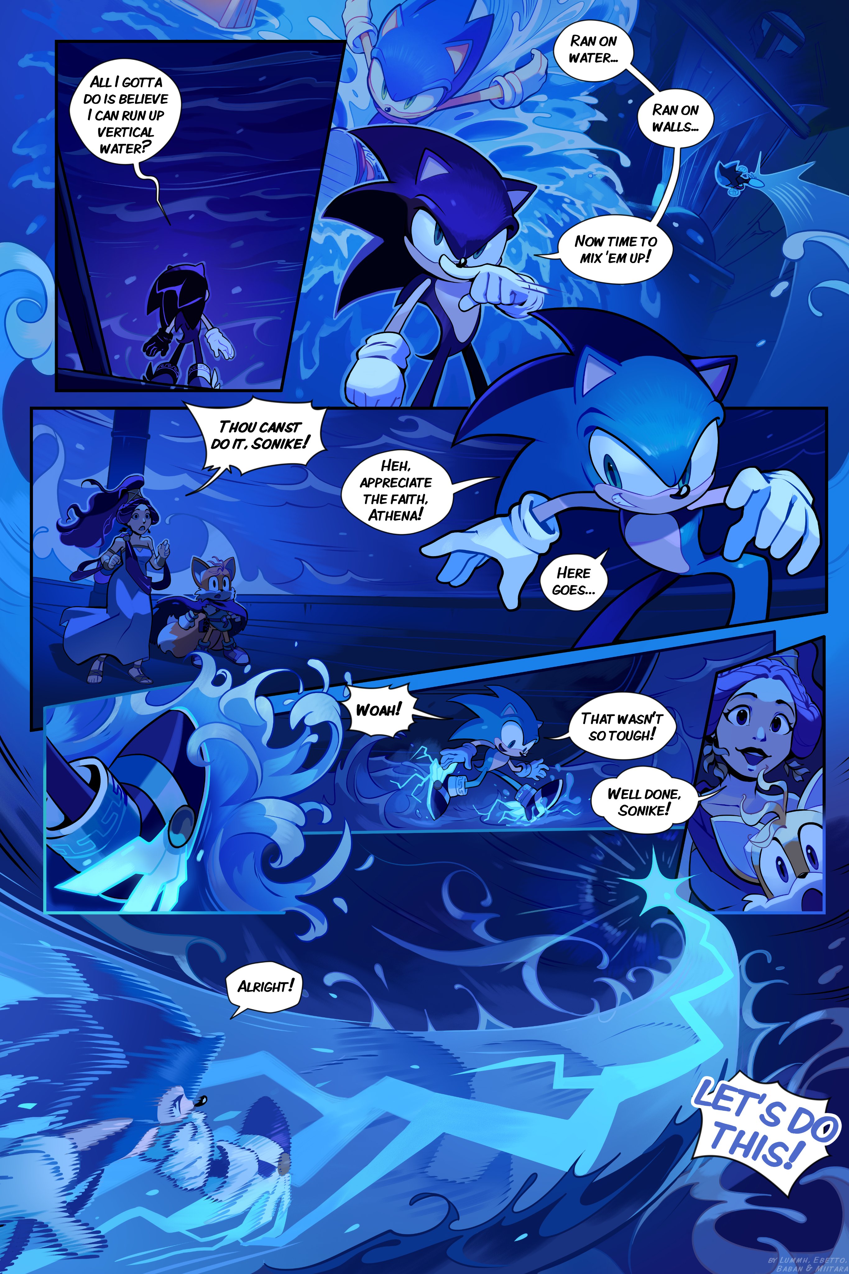 >>21603 This week we're continuing three different Sonic comics! First up is the next installment of Sonic and the Olympus Heroes! We last saw Sonic helping the goddess Athena and he got some sweet new shoes! Let's see where they head to next!