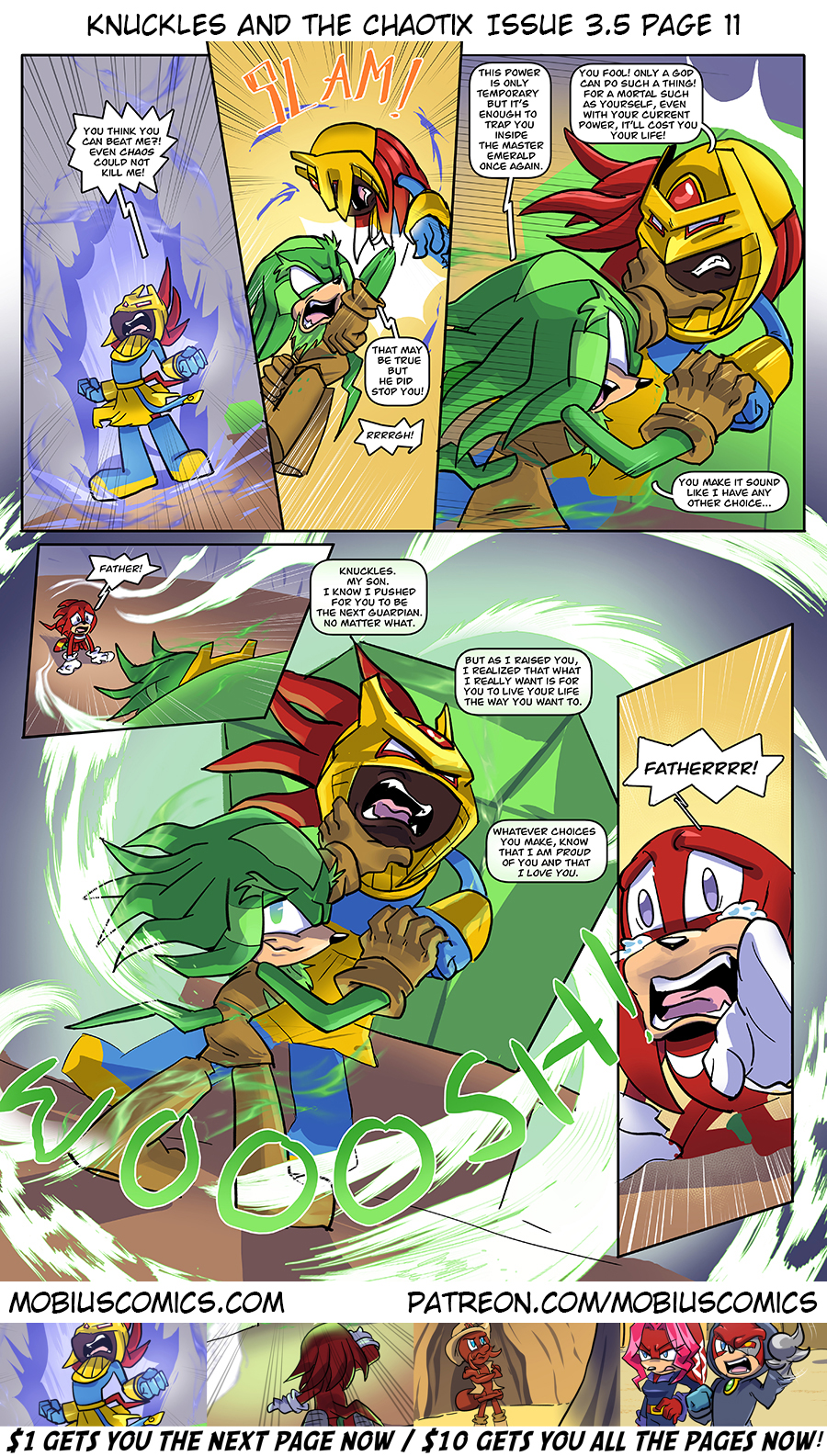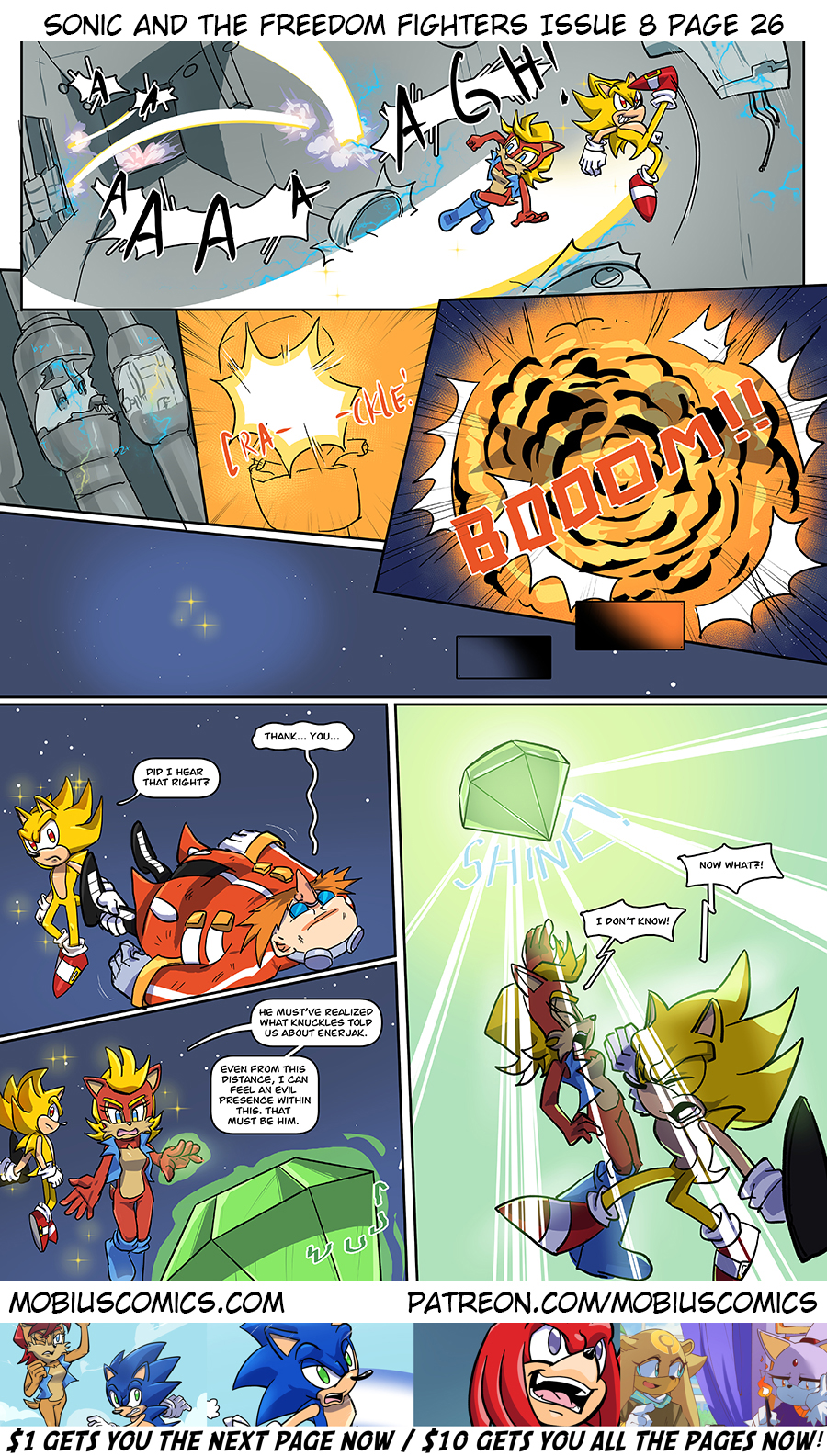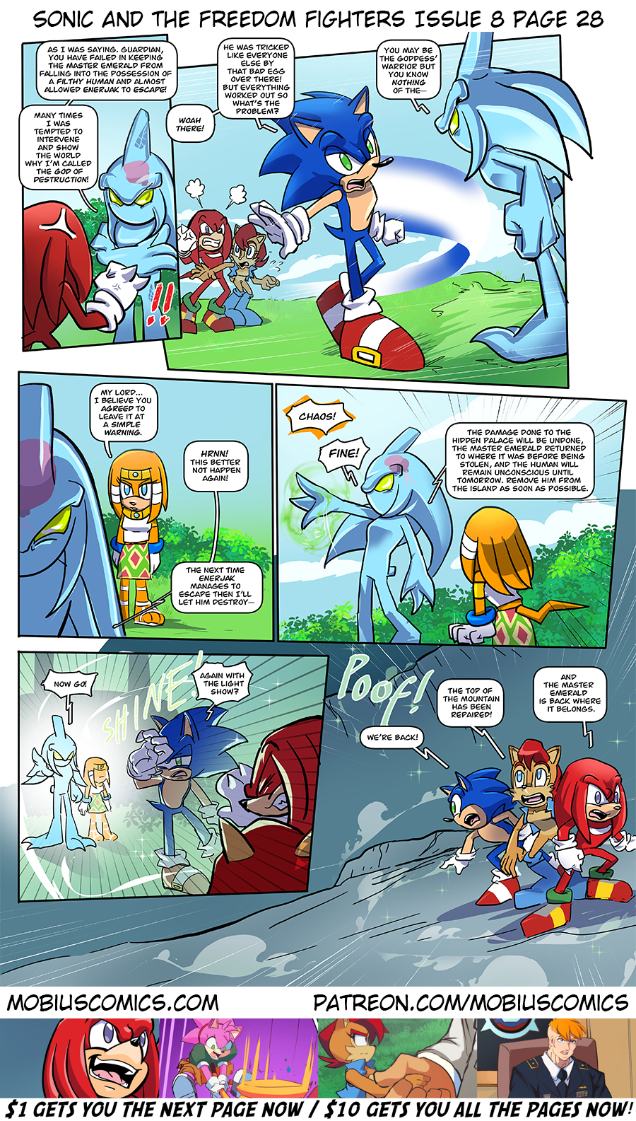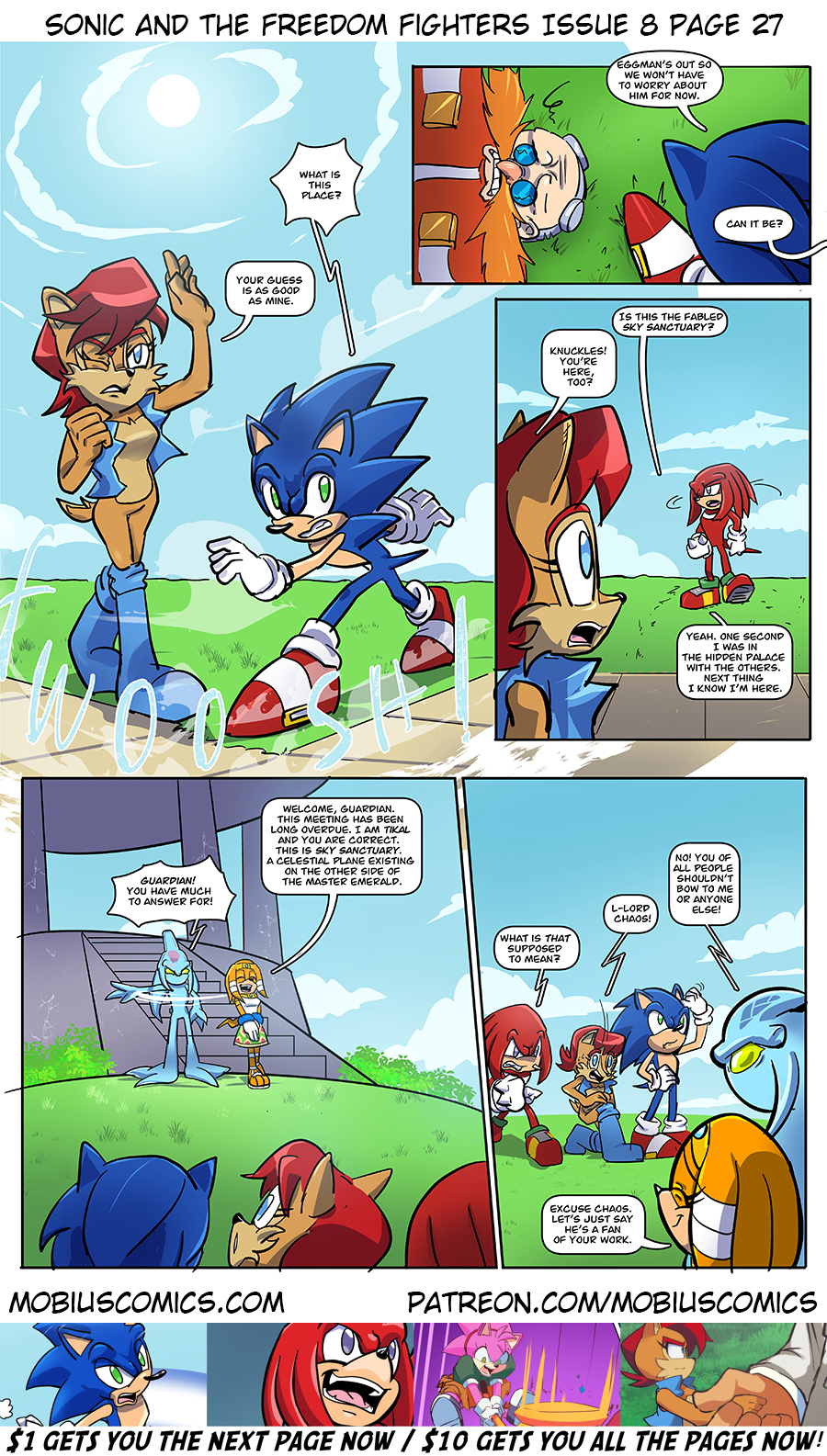 Sally gets to the meet the god she and her mother worship. Knuckles has been called up to be chewed out by his boss. And Sonic is here as well. Eggman, too.