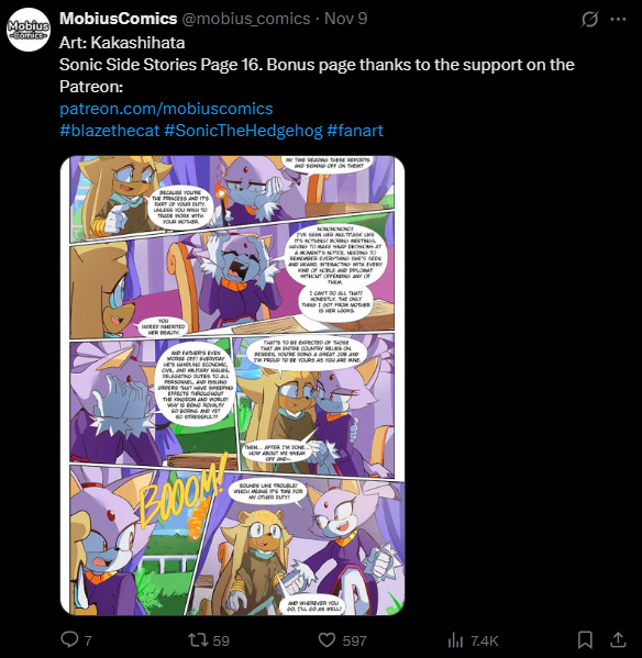 One feeling I can't shake from not just official Sega stuff but fan content is this stagnation. Like it's the same characters, doing the same thing, acting the same way, and any AUs never progress past the one story. Or it's just gags and shipping. I feel so spoiled by Archie in that things kept changing and new characters were being introduced.
