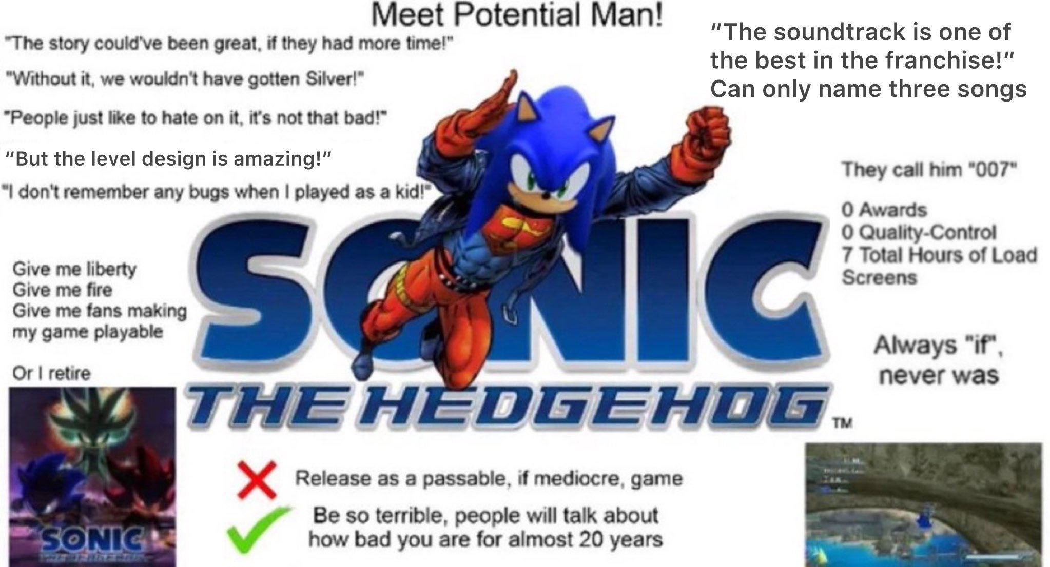 Also yeah I'd of killed for an ocean settings Sonic game on DS or Wii. Would be so easy to come up with cool level themes, crazy bosses, cool new allies or villains and just playing with Sonic having to be surrounded by the ocean depths.