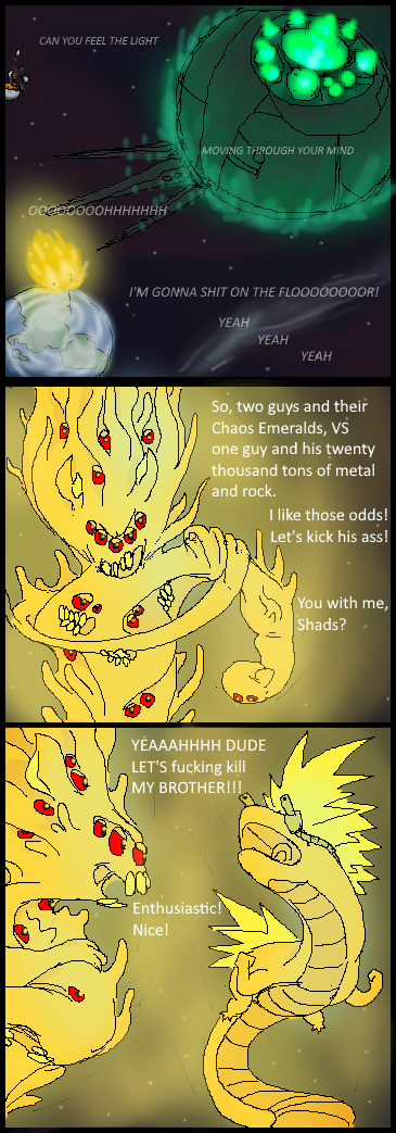 The Sonic series and Dragon Ball series have quite a few similarities and I’m totally definitely sure it’s all just a coincidence. To continue that tradition, I do like to take certain things from Dragon Ball and apply them to these comics. It’s very rare so don’t expect to see it come up often. Can you guess what this scene is inspired by?