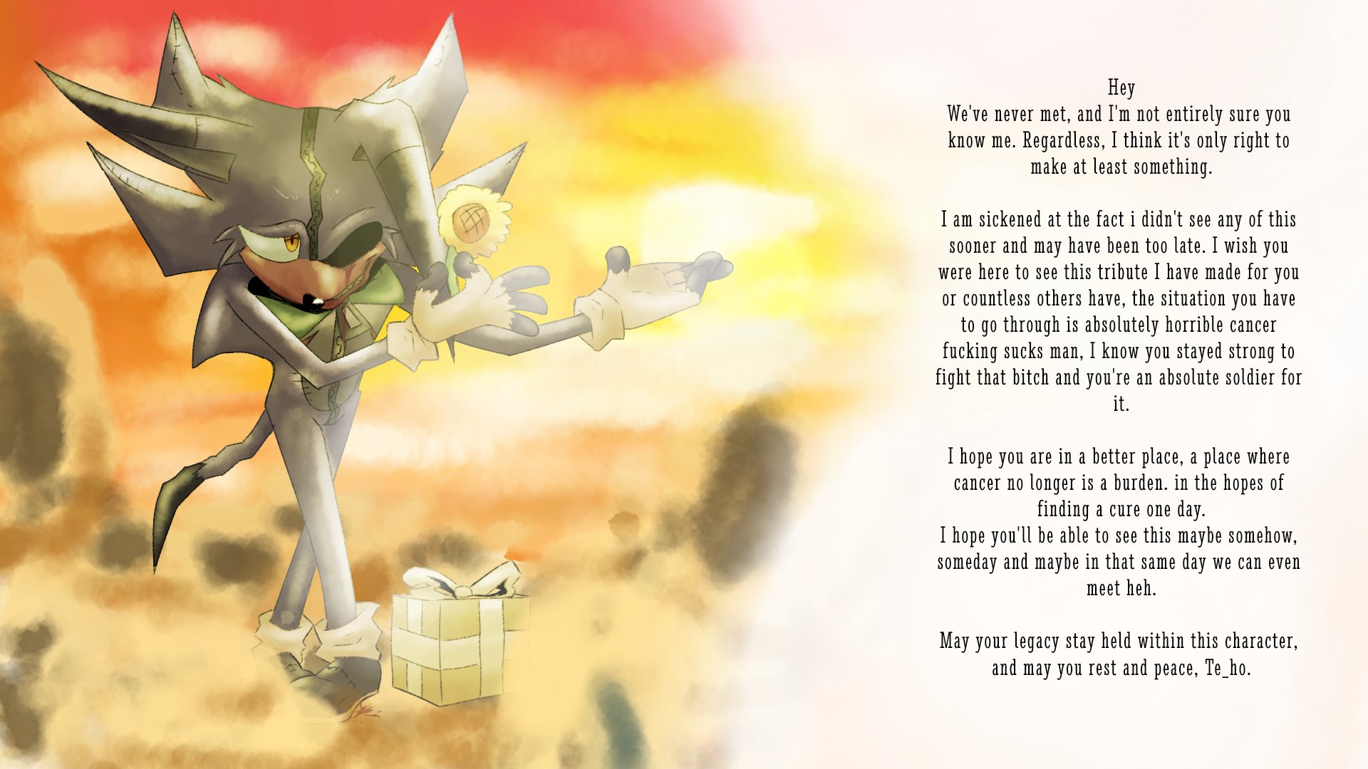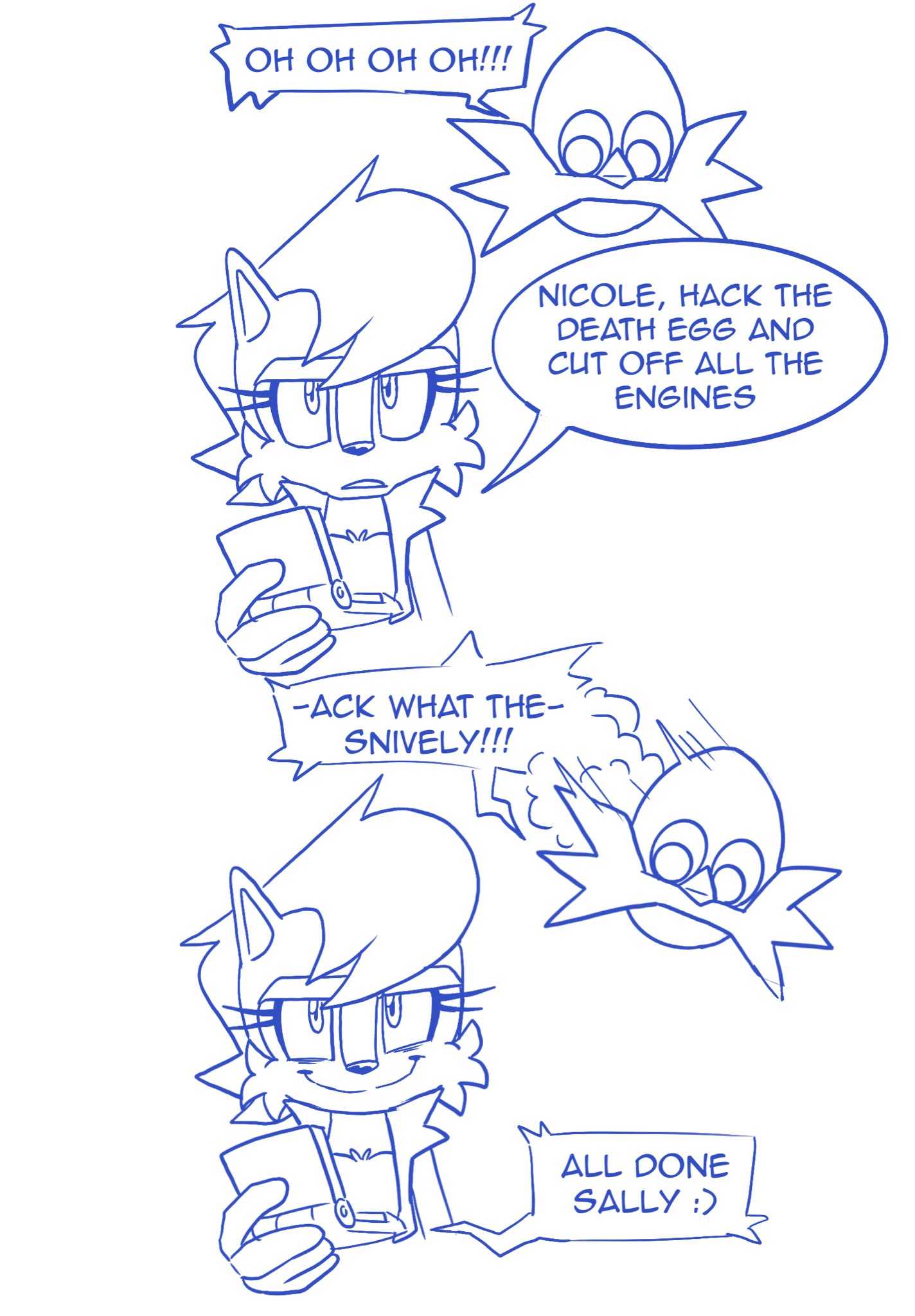 >>22563 Thanks! Work's been pretty busy, and so has my personal life 😉. Still, I'm gonna try and post here more often, I've really missed you all! >>22638 I really love how you did things here, even if it means we won't get best ship Max x Locke. It's a really nice parallel for how Tikal sacrificed herself to save her corrupted friend by sealing him inside the Master Emerald >>22639 Now there's an interesting ship! To think both of Silver's love interests would rather get with each other! >>22647 I mean, is it even a legit fandom if you don't have needless drama? >>22653 >Of course I won't actually do that. He says, after making an entire issue devoted to Sonknux! >>22659 >It's funny to think that the IDW comics would be more popular if Sega allowed romance in it. Or action! Seriously though, preboot Archie struck a good balance between action, romance, and slice of life. IDW leans way too heavily on slice of life and glacial pacing, and it's alienating their target audience which, for the record is supposed to be kids, not Evan and Ian's 30-something xitter friends >>22661 I mean, if they wanted a cute couple that are actually fun Rough and Tumble are right there! >>22663 Oh, no one pays attention to him. He's been throwing online tantrums in the fandom since the 90s. While I don't think we'll get any cameos of Archie characters any time soon, at least we've got several ongoing fancomics >>22670 >Commission 43 Oh my, you have been busy! >>22672 >that painting Oh my! I'll pretty much have to see it now >>22674 I hate to say it but I really dislike this writing style >>22679 >Sally bows to her deity >Knuckles is ready to punch him >Sonic's already gotten board and is cleaning his ear Yeah, that tracks >>22680 lmao >>22686 I still maintain it's a good game! And it's technically less buggy than Rise of Lyric! >>22688 There are so many of these! >>22767 >introduce a bunch of creepy, possibly mind-controlled jesters >immediately lower the stakes as fast as possible It's so frustrating!