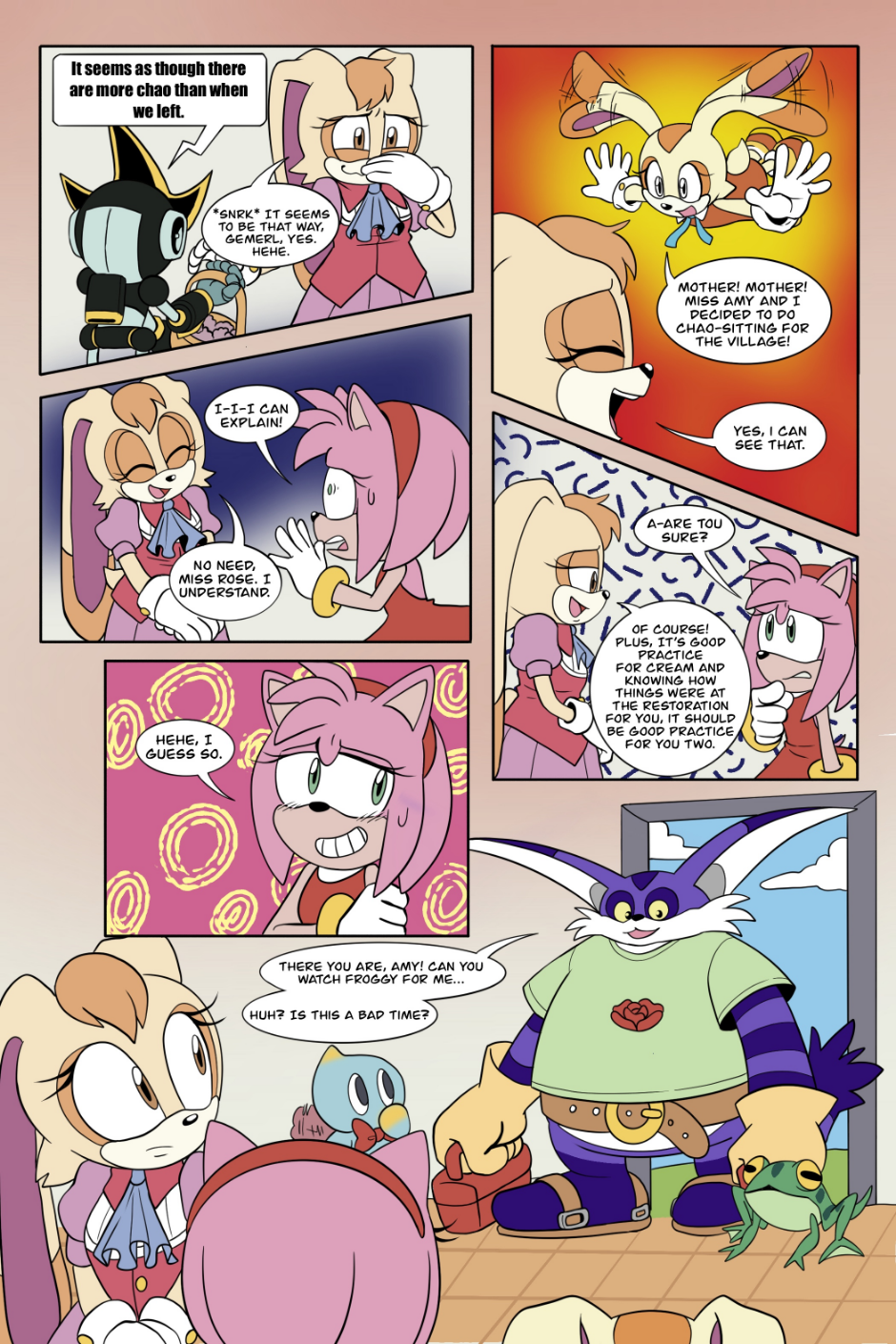 >>22709 It's kinda weird that we have Chaos being a mutated Chao, but the Chaotix are their own thing >>22710 Bros, is Tikal a bad Chao-sitter? >>22711 >Sadly they are the supporting cast for Cream. Boo!