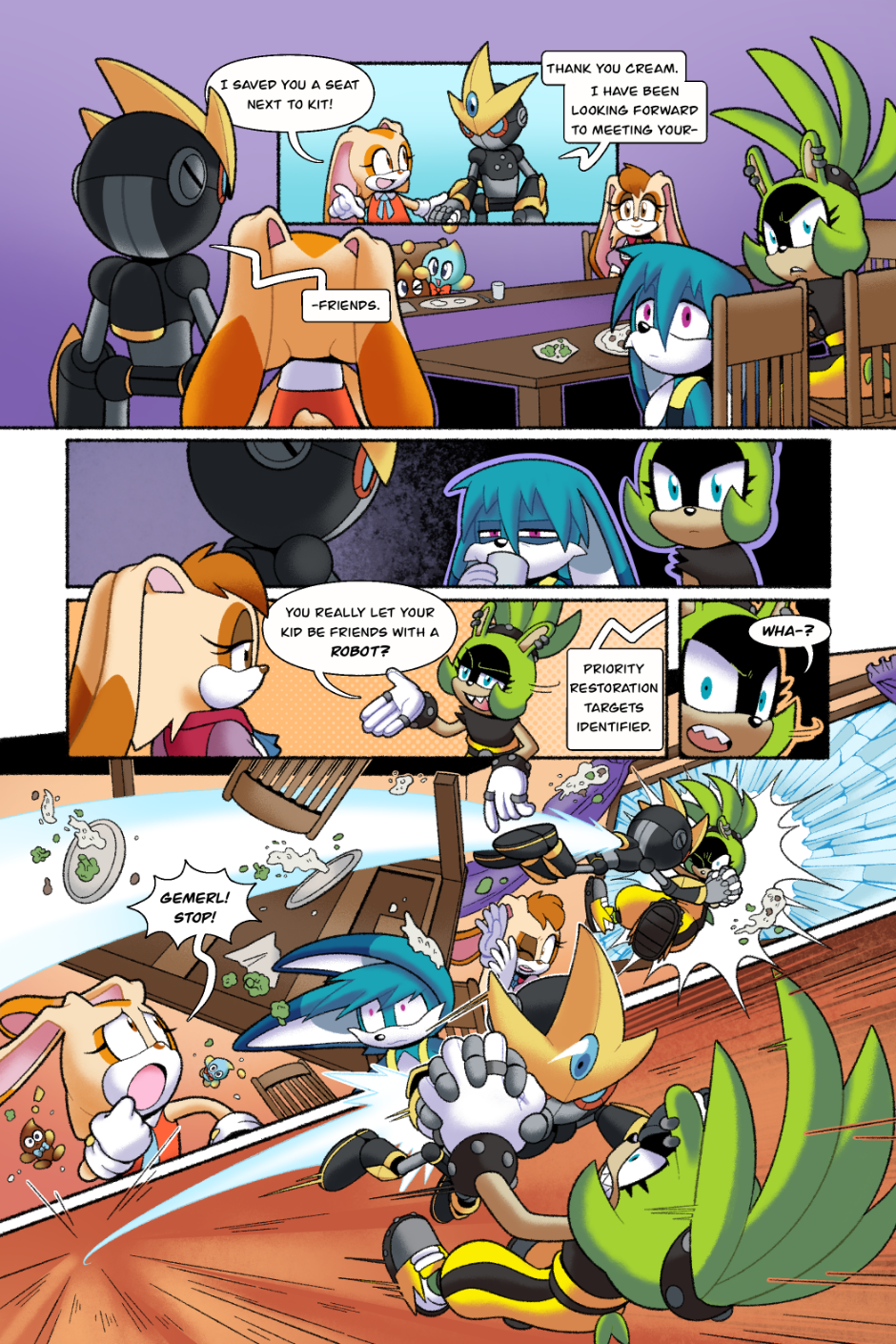 >>22755 Seeing that Sonic allowed an amnesiac Eggman live peacefully in a village, I can't see the Restoration throwing much of a fit over the androids having dinner.