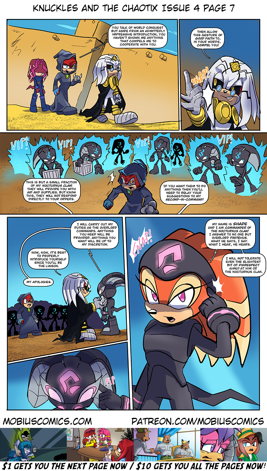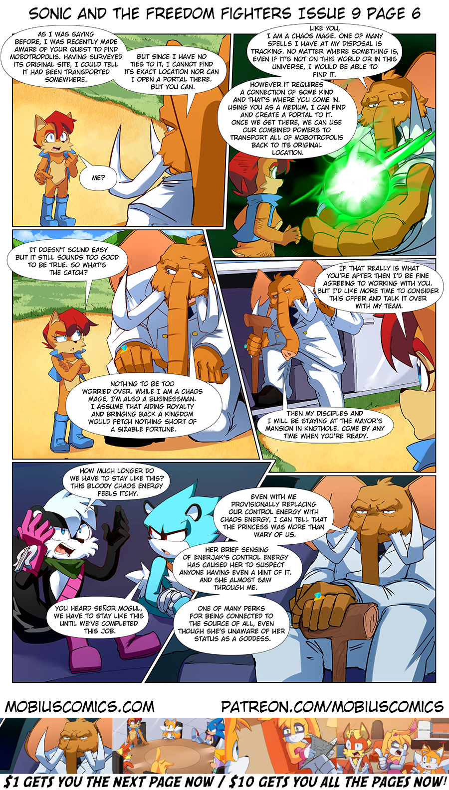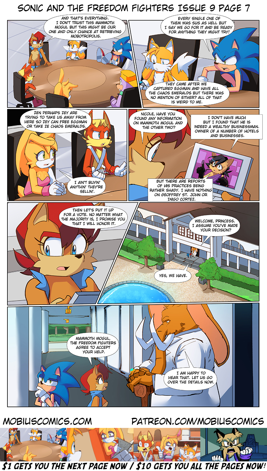 Sally voted to work with Mammoth Mogul because she’s desperate to get Mobotropolis and her family back. Sonic voted for it because he’s confident they can stop any attempt at a betrayal, he misses Uncle Chuck, and he knows Sally would be sad if they didn’t try. Tails voted for it because he knew that Sonic and Sally would vote for it. Bunnie has no attachments to Mobotropolis but she voted for it because she knows the others would as well. Antoine was conflicted with keeping Sally safe and the hope of getting Mobotropolis back, ultimately voting for it. Rotor decided to not vote but said he supported whatever decision the team made. Nicole didn’t want to vote but said that if she did she would choose whatever Sally chose.