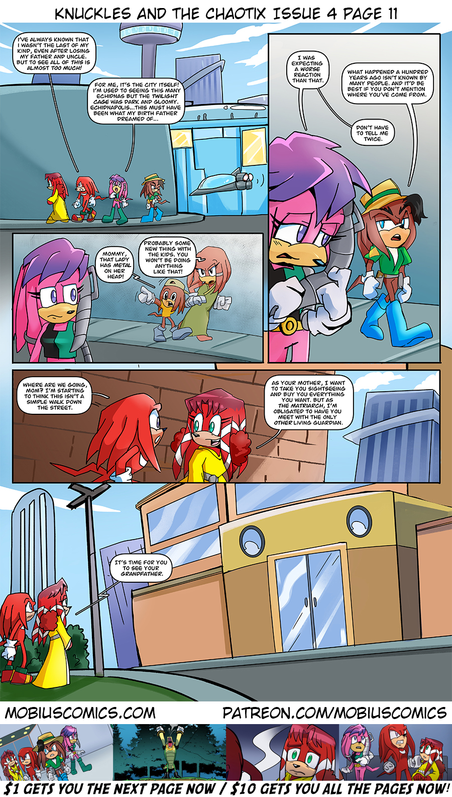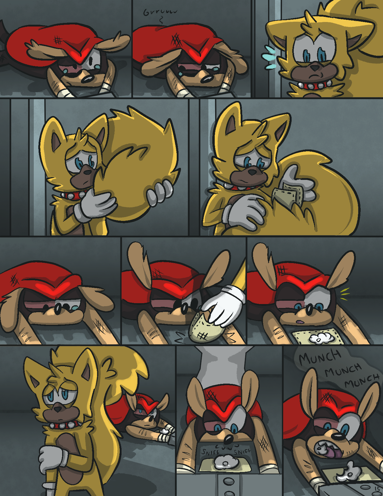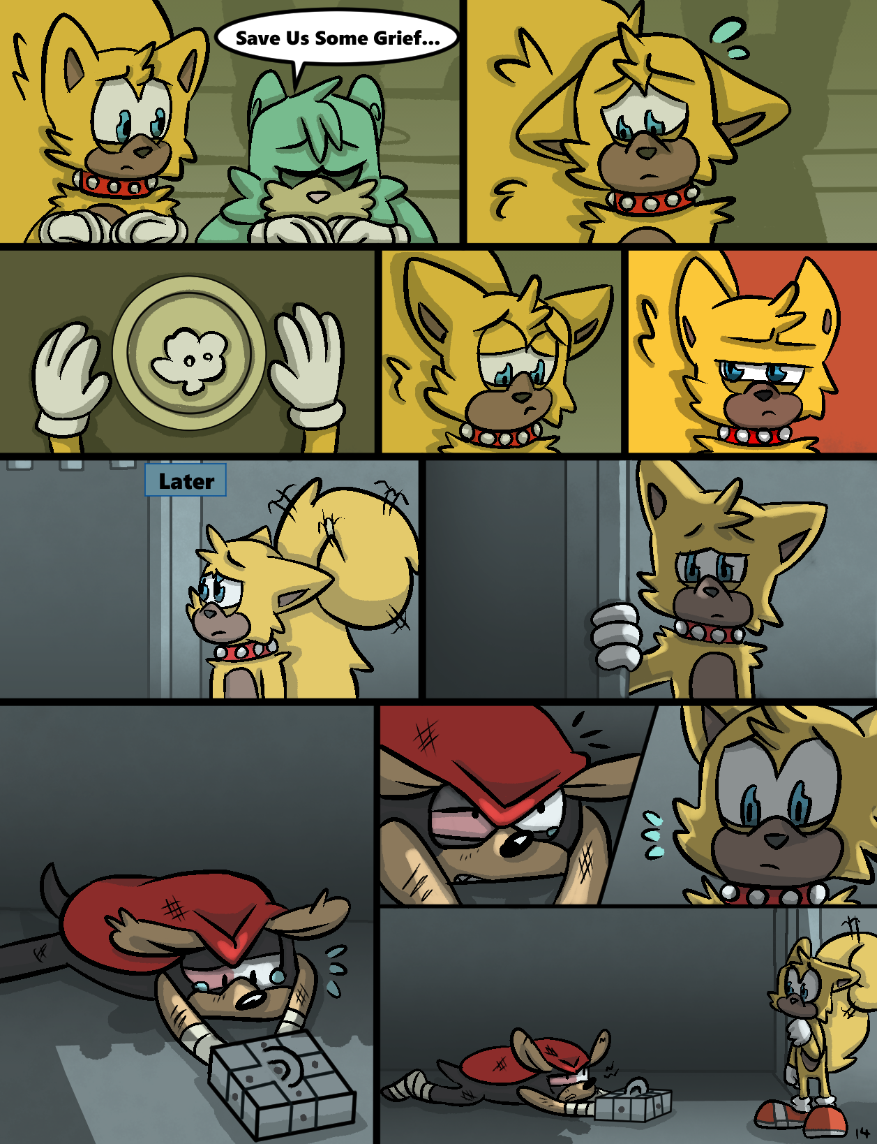 Lara-Le reuniting with her son is a bittersweet thing. Missing out on most of his life and constantly remembering the circumstances for it. She’s grateful to see him again but she shouldn’t have been unable to for so long. What conclusion will Knuckles come to about his various family members? Speaking of which, it’s Sabre! We last saw him briefly on page seven of Sonic Side Stories!