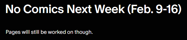 The first half (25 pages) of Clash of Two Worlds is done and the artist says they're taking a break and will finish it later. It's been almost a year since the end of the previous chapter so it might be another year for the second half. Should I do the first half now and the second half when that's done or wait a year and do the whole thing which will be about 50 pages? If I do half then I'll add another comic after that.