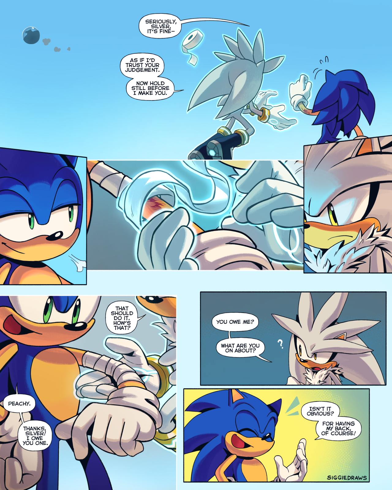 >>23827 lmao Hey! For the record, I don't do the HR stuff, and I do follow up with all interviewees. I've been on the other end enough to know how much that sucks >>23829 I got the a "Come with me if you want to live" vibe from her intro so it tracks she's from the future >>23830 They already had Knuckles deal with Iblis and absorb Flames of Disaster so any 06 adaption would have to be very different. They can still keep the part where the redhead holding the Flames of Disaster kisses Sonic though! >>23832 Well there's a surprise! >>23833 I mean, he could've had Knuckles split his time between Albion and Angel Island, but we all know Locke doesn't believe in half measures. Glad you're using Albion for their off-world home. Between, Echidnaopolis, Haven and Albion, the whole secret high tech Echidna society thing was way overdone >>23835 I was sure I'd posted the reboot, but it turns out it was a different comic where Sally has absolutely ginormous tits >>>/pco/467749 So far there's 11 pages up publicly so I could post them if you like I know, I know! I've got around infinity ongoing comics to update as well ;_; >>23836 I really liked his characterization in 06, he's just this delinquent twink from a nightmare future with absolutely no social skills, and absolutely no qualms about straight up murdering Sonic >>23839 Rude!