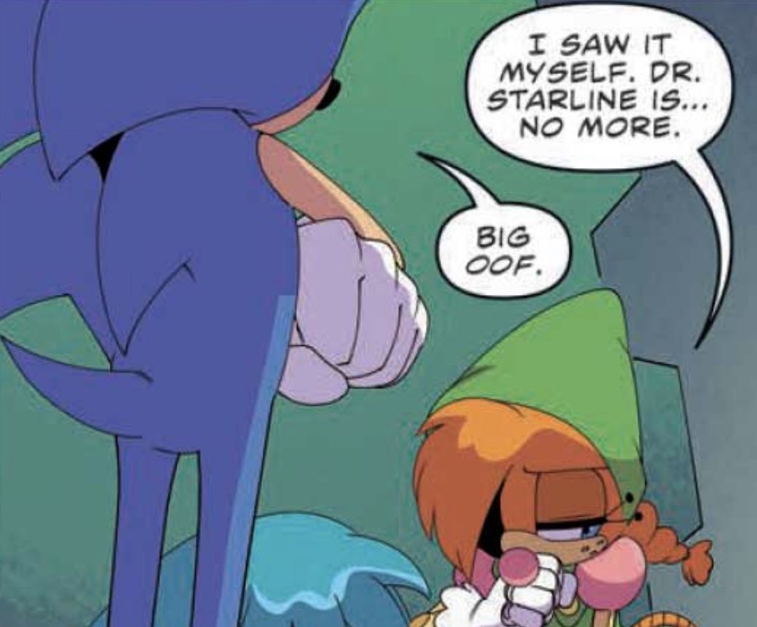 >>23707 Now that would be a fun way to do it! I think they took things too far in return to Angel Island having Remy practically worship Knux, but mutual admiration like this would work really well >>23713 It's very exciting! >>23714 Between the Dark Legion coming from the Twilight Zone, and Echidnaopolis and the Dingos being semi-phased out of reality due to the Hyper-zone Projector, the whole thing was just way too confusing. I'm glad you've simplified this while still retaining the whole "the Council are shortsighted idiots" thing >>23715 Slightly softening up Locke's rough edges while putting the focus on the Council's many dumb decisions really has made him a genuinely sympathetic character >>23718 It's a shame MXYL never got this right >>23720 So cursed! >>23721 lmao >>23722 A lot of the early Knuckles stuff was still in the lighthearted humor phase so I can see why they had things the way they were. Considering Knuckles literally chuckles several times in S3&K it would've been nice to see more of his trickster side in his early appearances. Long term I'd have introduced a hidden city of Echidnas, but with less Star Trek/Wars and more of a Atlantis: The Lost Empire vibe >>23723 It's kinda weird seeing him in a nice office and not a tent >>23724 >Sonic being a trans man I get that Sonic's the main character, but Charmy's right there! Only female bees have stingers, and he's never shown bare chested... >>23726 Fleetway's >>23729 If anything I'd have assumed Eggman was asexual in your comic (and probably in Archie as well). Dude only seems to like control and science >Remington = Straight Well that's just factually incorrect! Also, you had an entire issue where Sonic and Knuckles were flirting >>23732 >Mr. X You can just tell Ian wanted to do more with him >He’s also a “remnant.” Knowing smile!