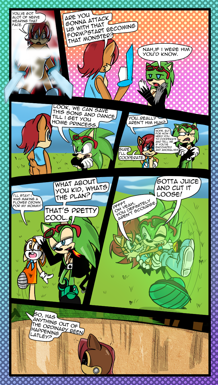 https://www.deviantart.com/zeroviks I don't know how long ago but there was a comic I covered briefly. It was called Chaos on Scrapnik Island. All I remember is that it had Sage as a roboticized mobian aka robian. For completionist's sake, here's the two pages I didn't seem to have posted before.