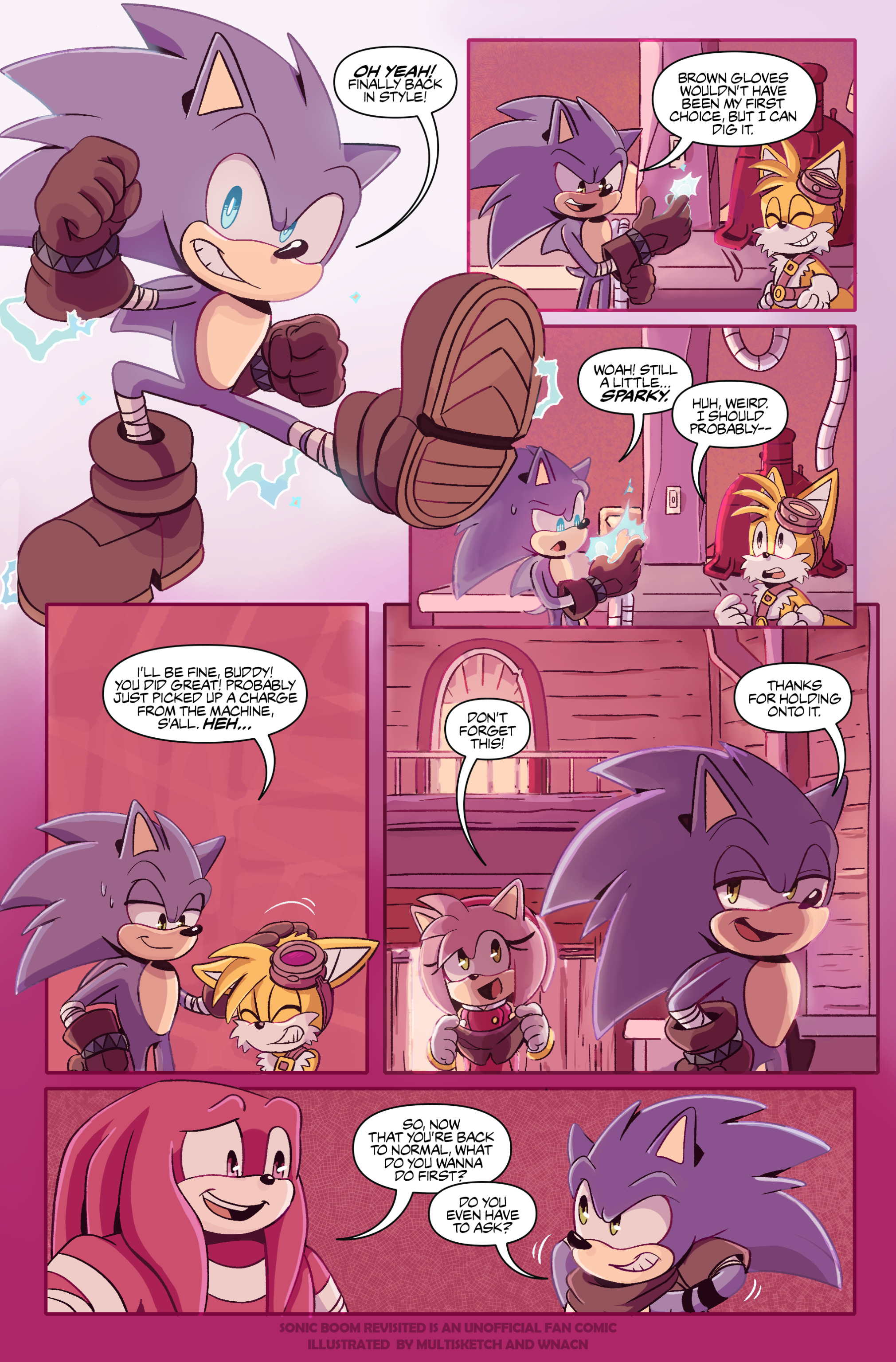 Focusing so much on action and adventure hasn’t allowed too many chances to show the fun side to things. I still like to sprinkle fun moments here and there but this page is all fun. Not fun for everyone. Poor Bunnie has to keep things under control while Sally is… recovering. And Tails will want to clean his ears with bleach.