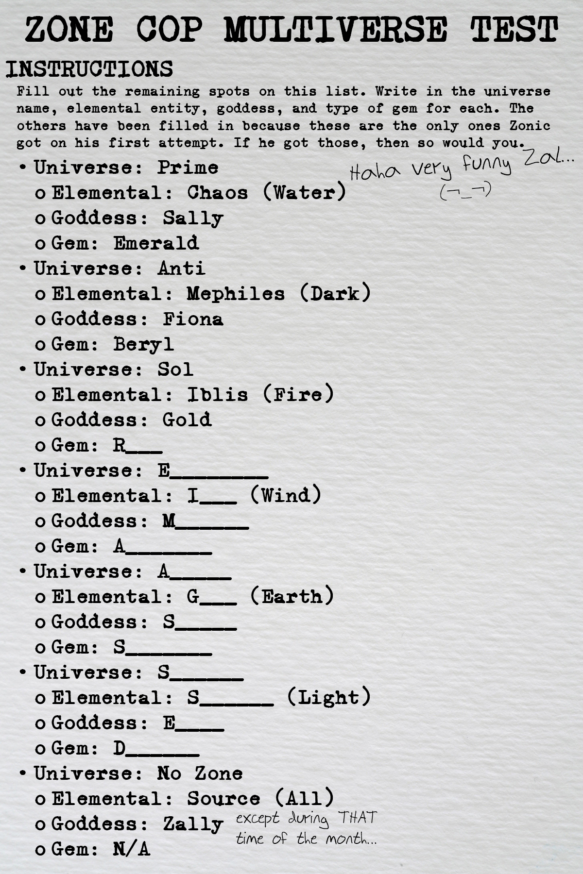 I actually made this a while back but since there's no comics this week, might as well post it now. Everything filled in has more or less been confirmed in the comic. These are things that will be revealed in Phase 2 aka the Modern era which will start after the current arcs for Sonic and Knuckles.