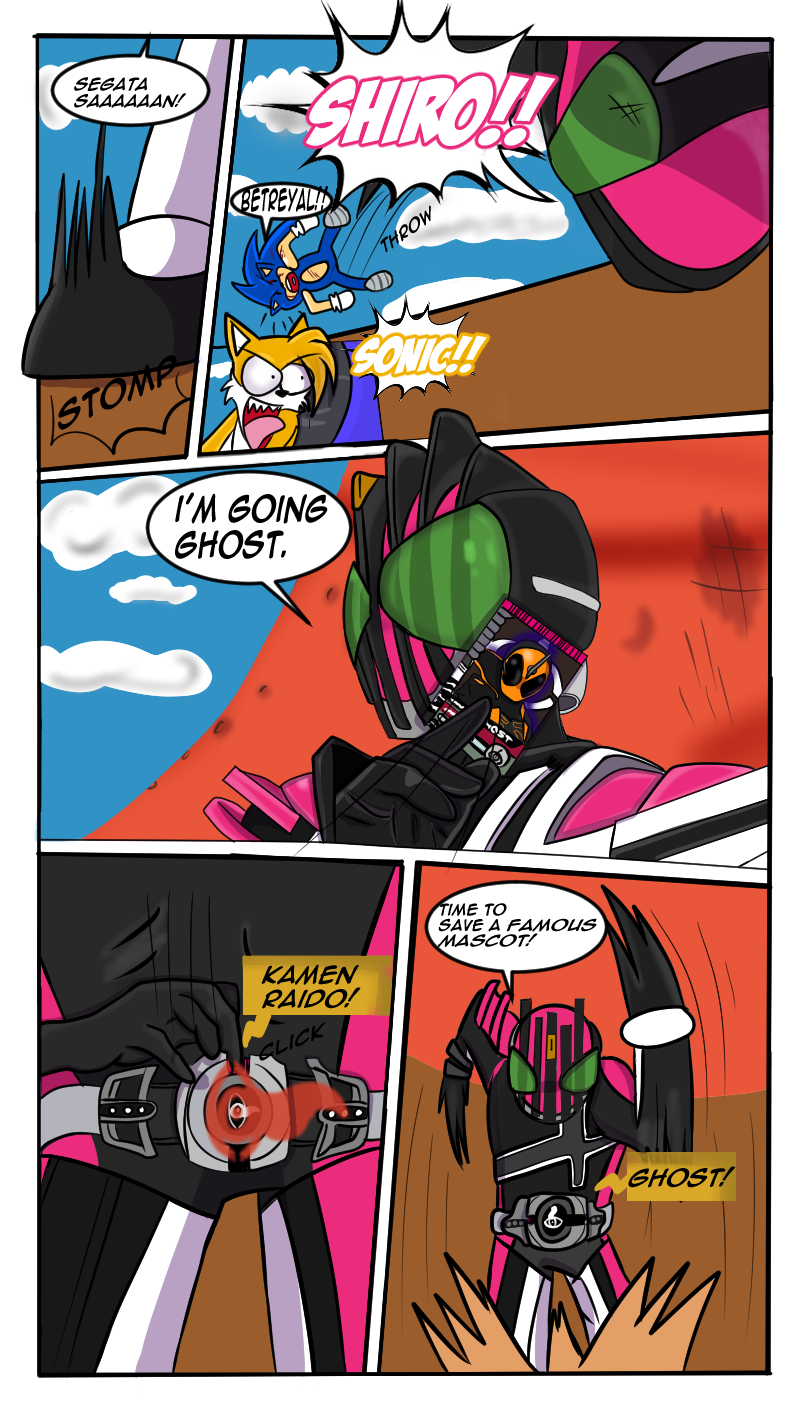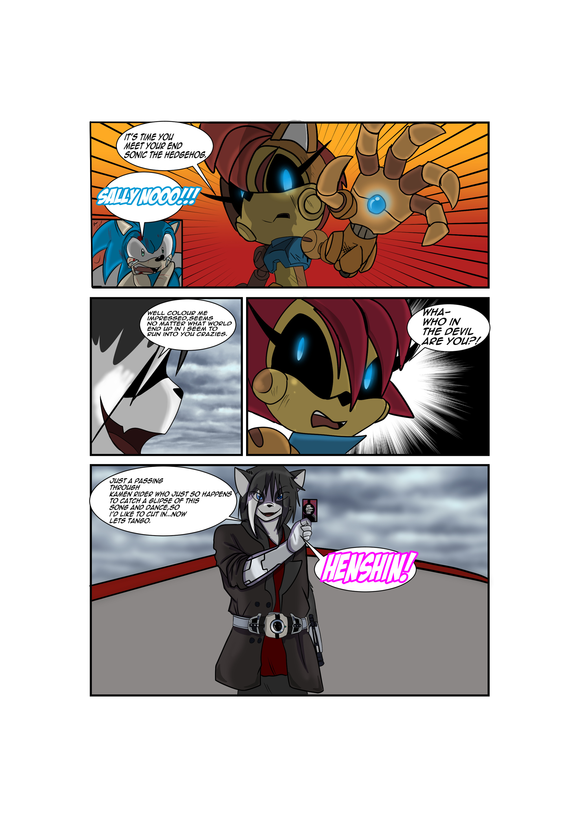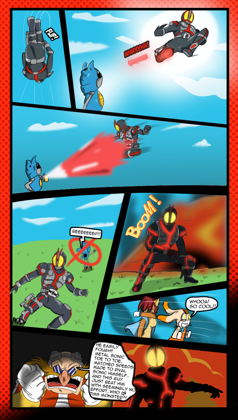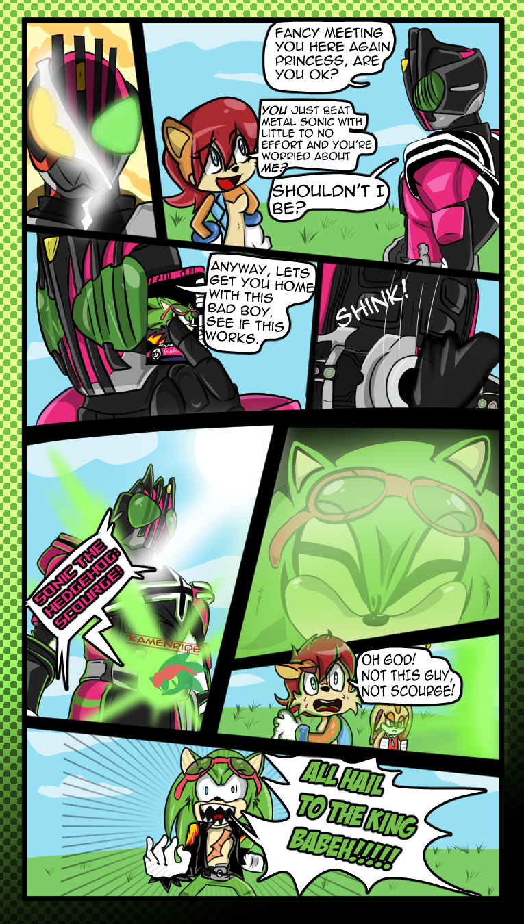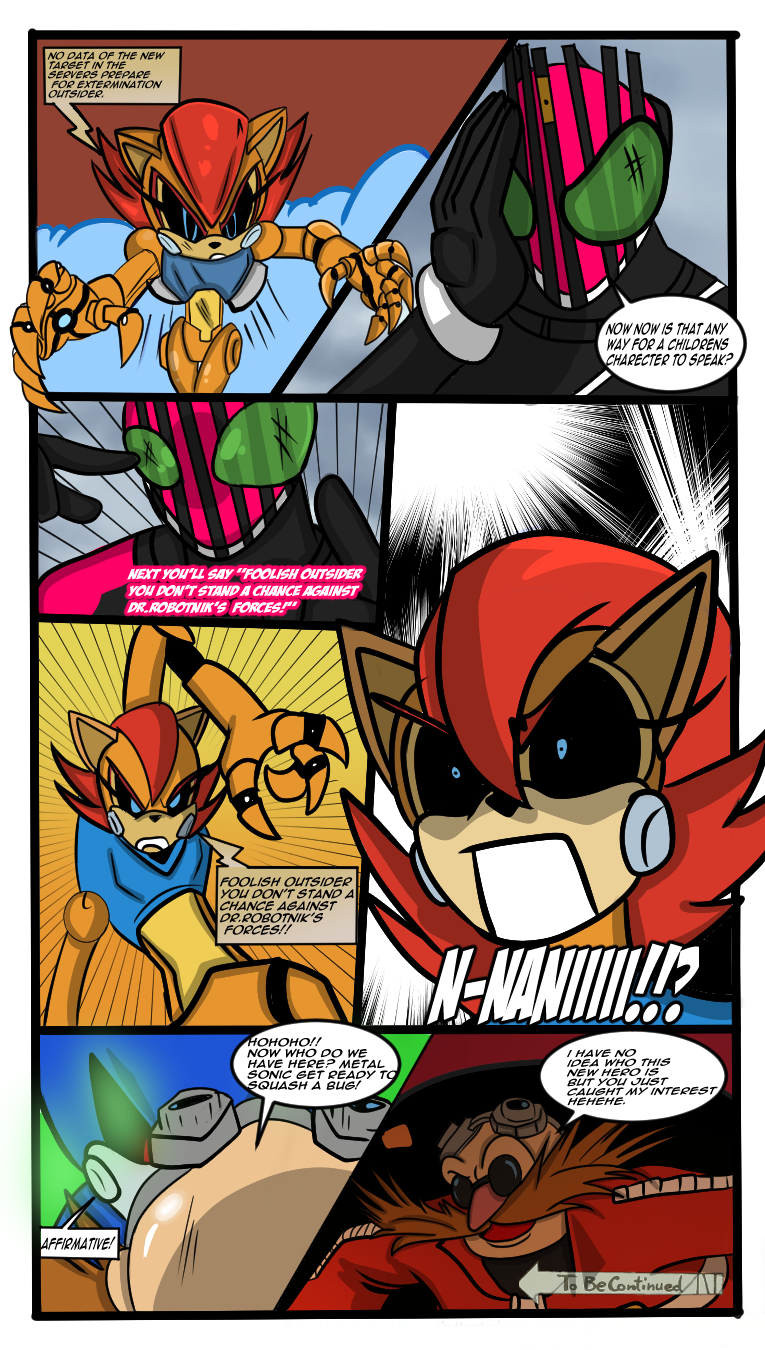 >>23574 Time to cover a comic I did a while back on the Unofficial Ride! This is the unholy and meme-y union between Sonic and Kamen Rider, taking place right when Sally was roboticized. This is World Traveler!