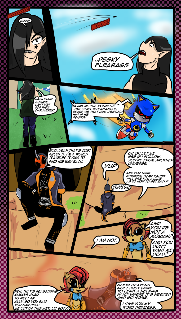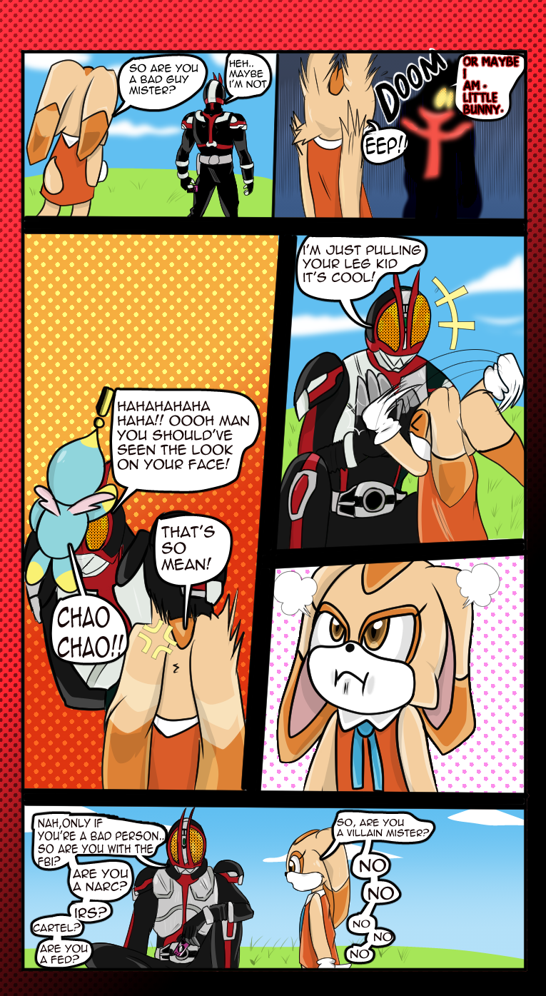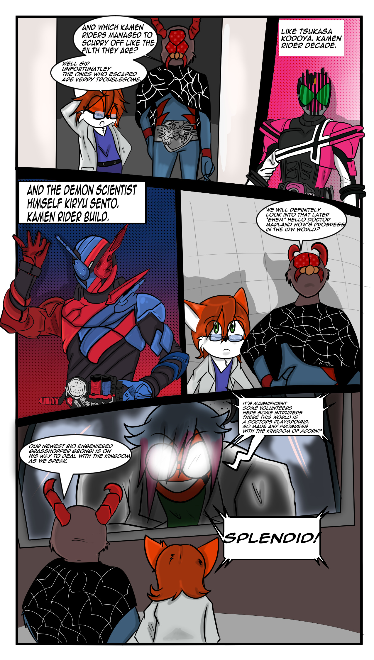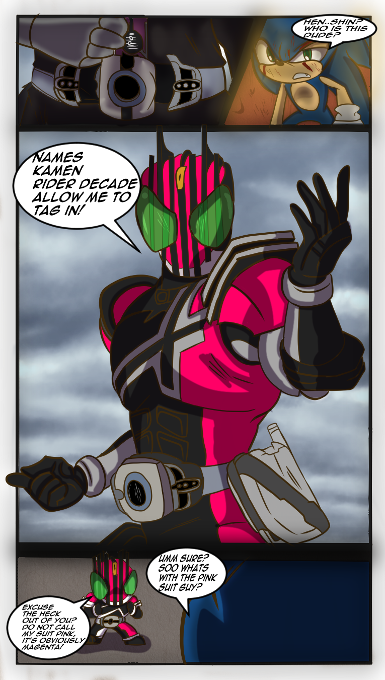 >>23574 Time to cover a comic I did a while back on the Unofficial Ride! This is the unholy and meme-y union between Sonic and Kamen Rider, taking place right when Sally was roboticized. This is World Traveler!
