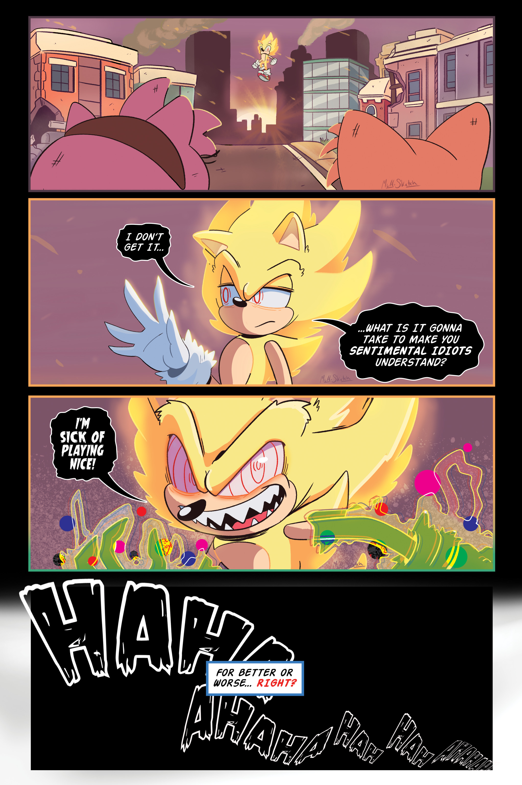 >>24058 Kit being an edgy bastard 24/7 is funny, I can see why Surge bullies him he's so self serious. >>24062 Tails to the rescue! >>24063 Honestly I would have preferred a funnier ending with less tension between Sonic and Surge. If only because Sonic takes it more confident and Surge isn't as serious about something so petty. >>24065 Yeah, that's my favorite as well. Sonic can be pretty ruthless when he wants to be. I've always seen his freedom moto as partly 'fuck around find out' and he'd be fine with showing Eggman what happens when the Doctor finds out. >>24067 Is that what they're calling it now-a-days? >>24068 >Eggman turns Sonic into Fleetway Super Sonic. Well at least he died, hopefully. >>24071 Yeah, this arc also had jewel pressing the self-destruct button bombing the Restortion HQ. But yeah this is way better, the arc was kind of boring and an idiot plot at that.