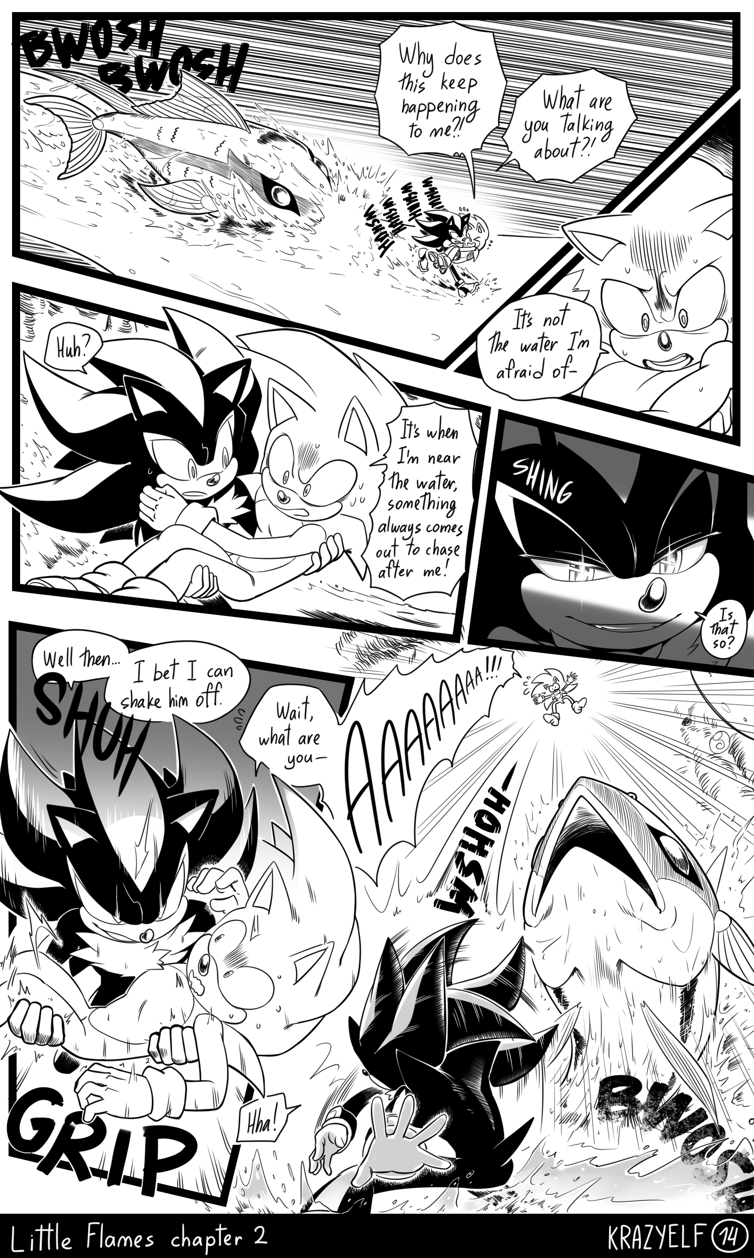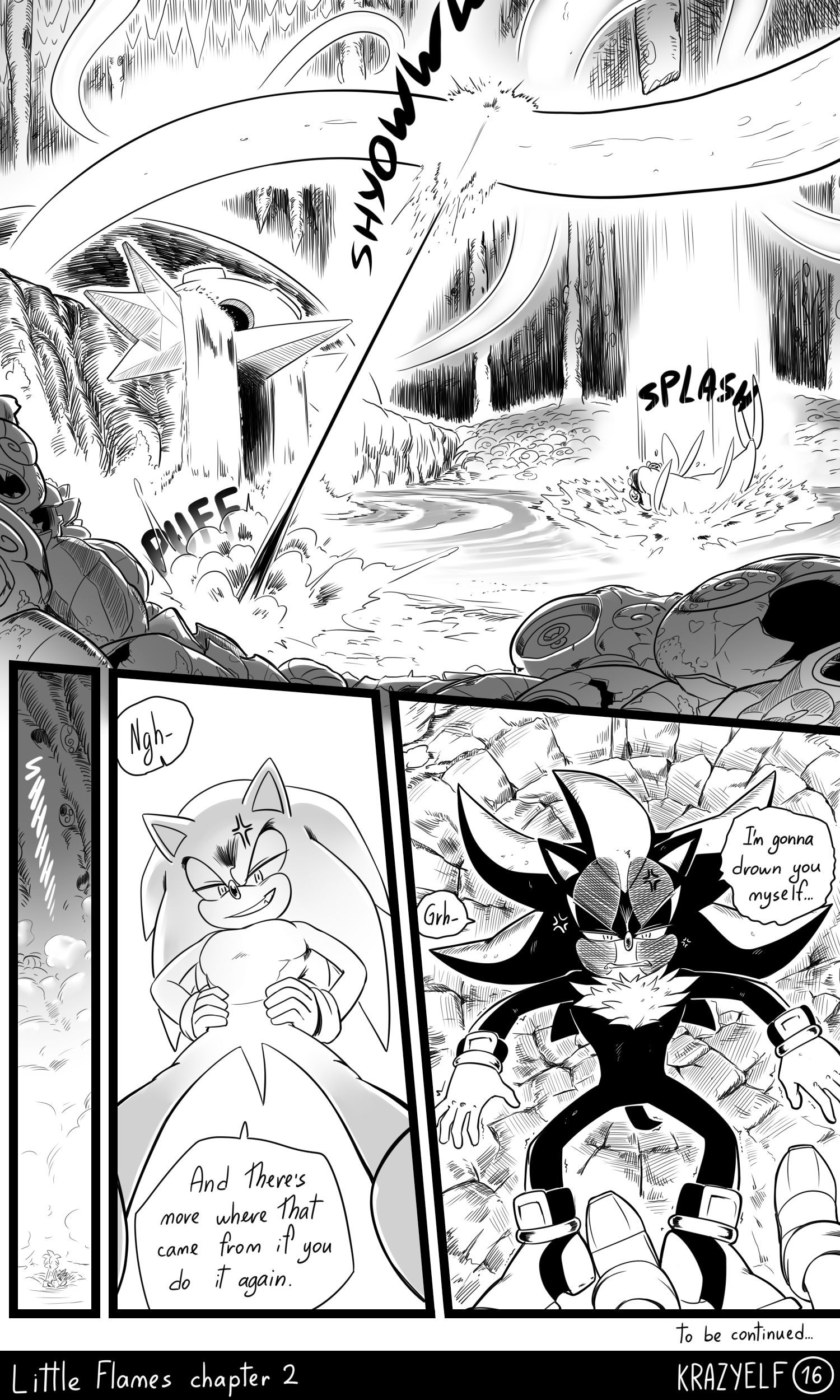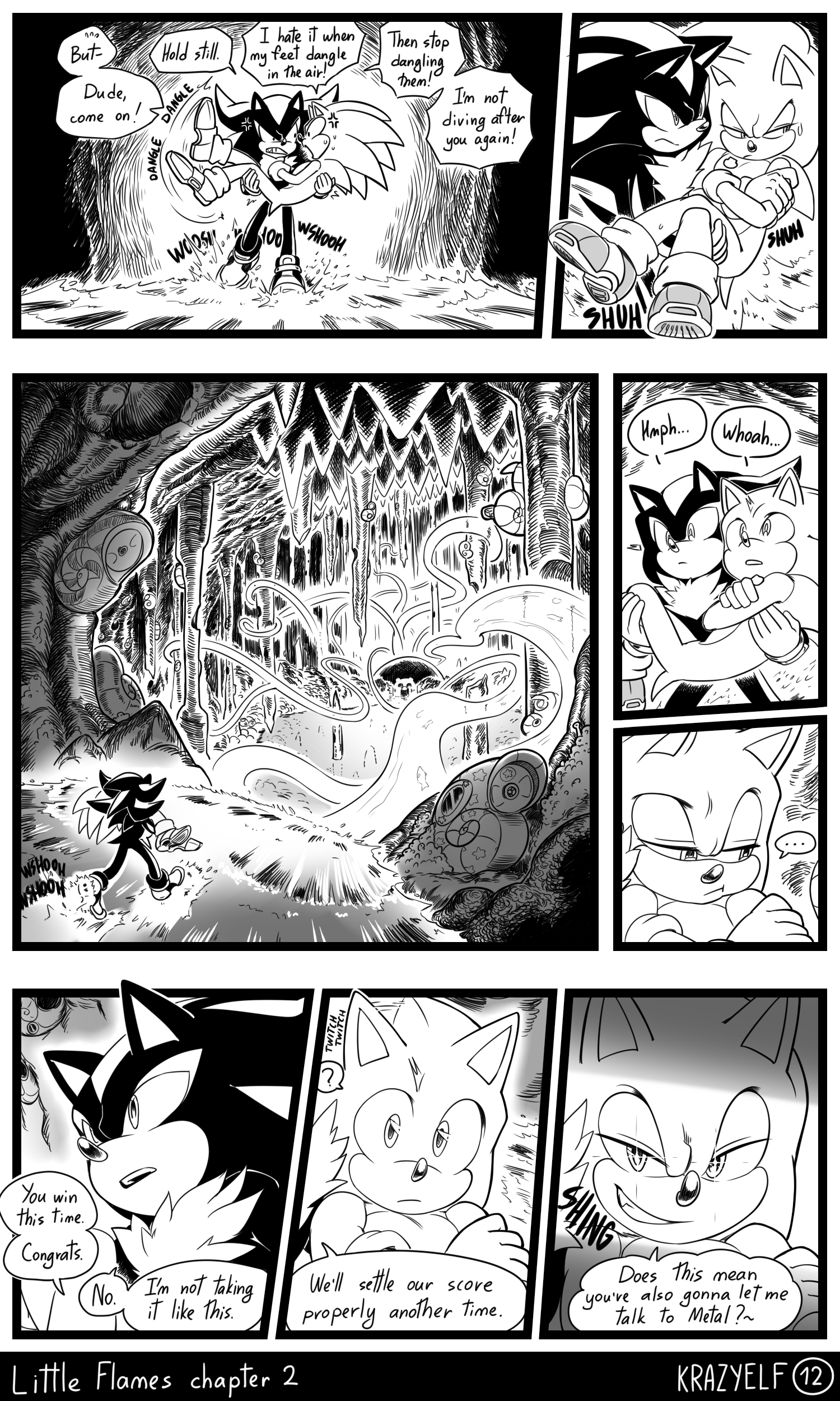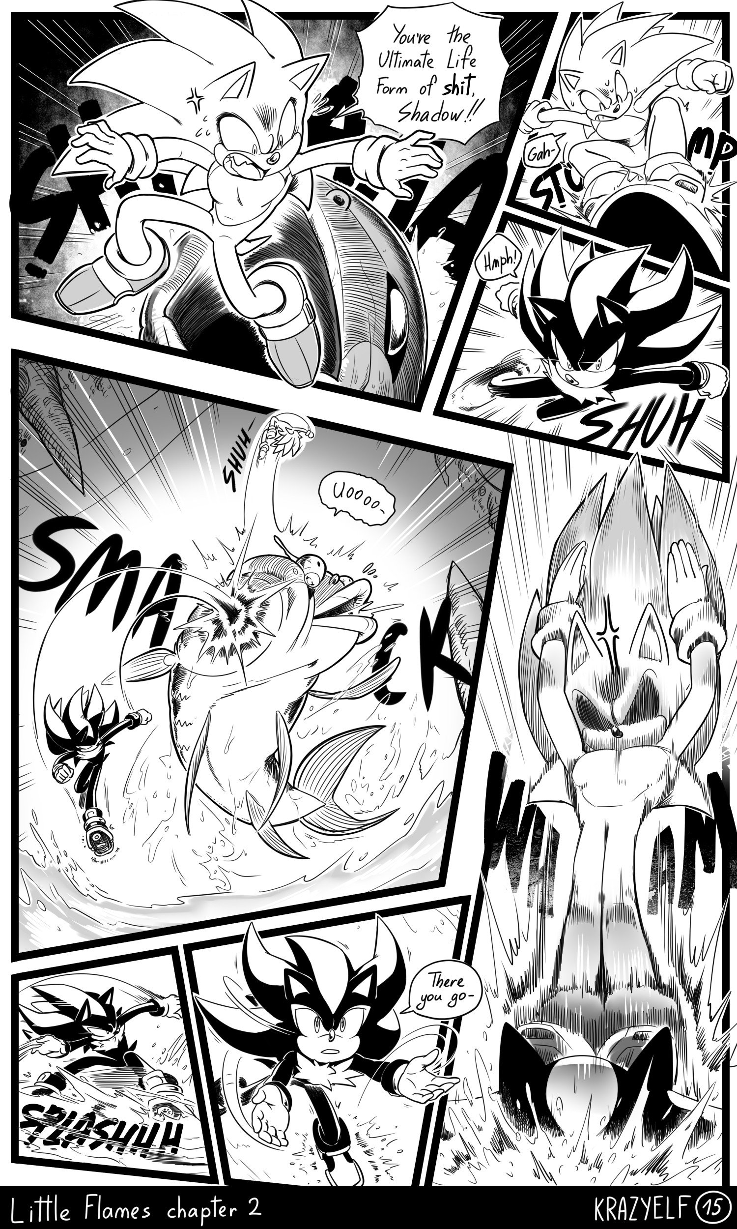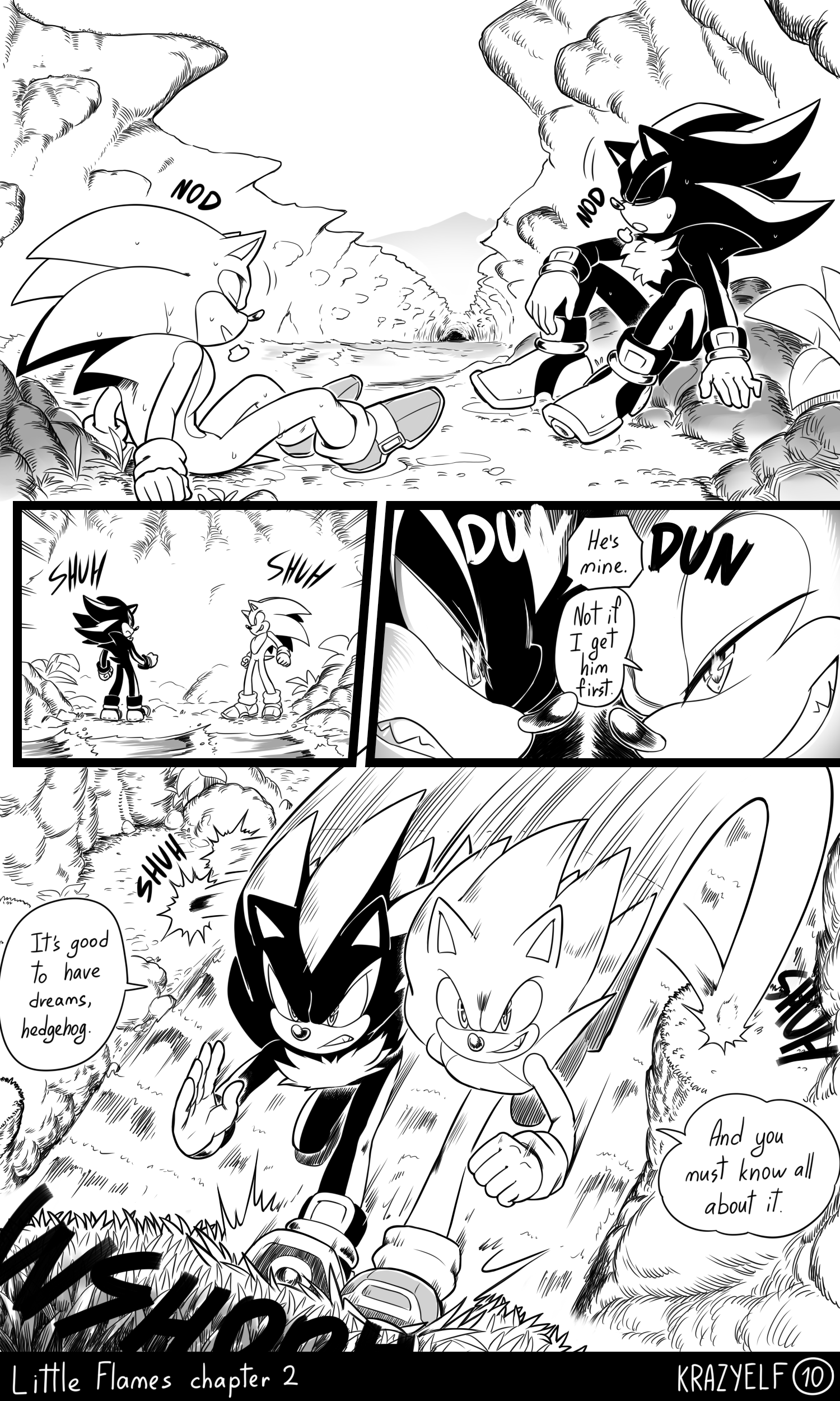 Another chapter in Little Flames, the gayest not-yet-gay comic is here! (Is this gayer than Heart of a Monster? You decide!) With Eggman dead, Shadow is worked to the bone by GUN and Sonic is feeling restless. Does Shadow have enough energy for Sonic? How about Sonic and a couple of other threats? Let’s find out!