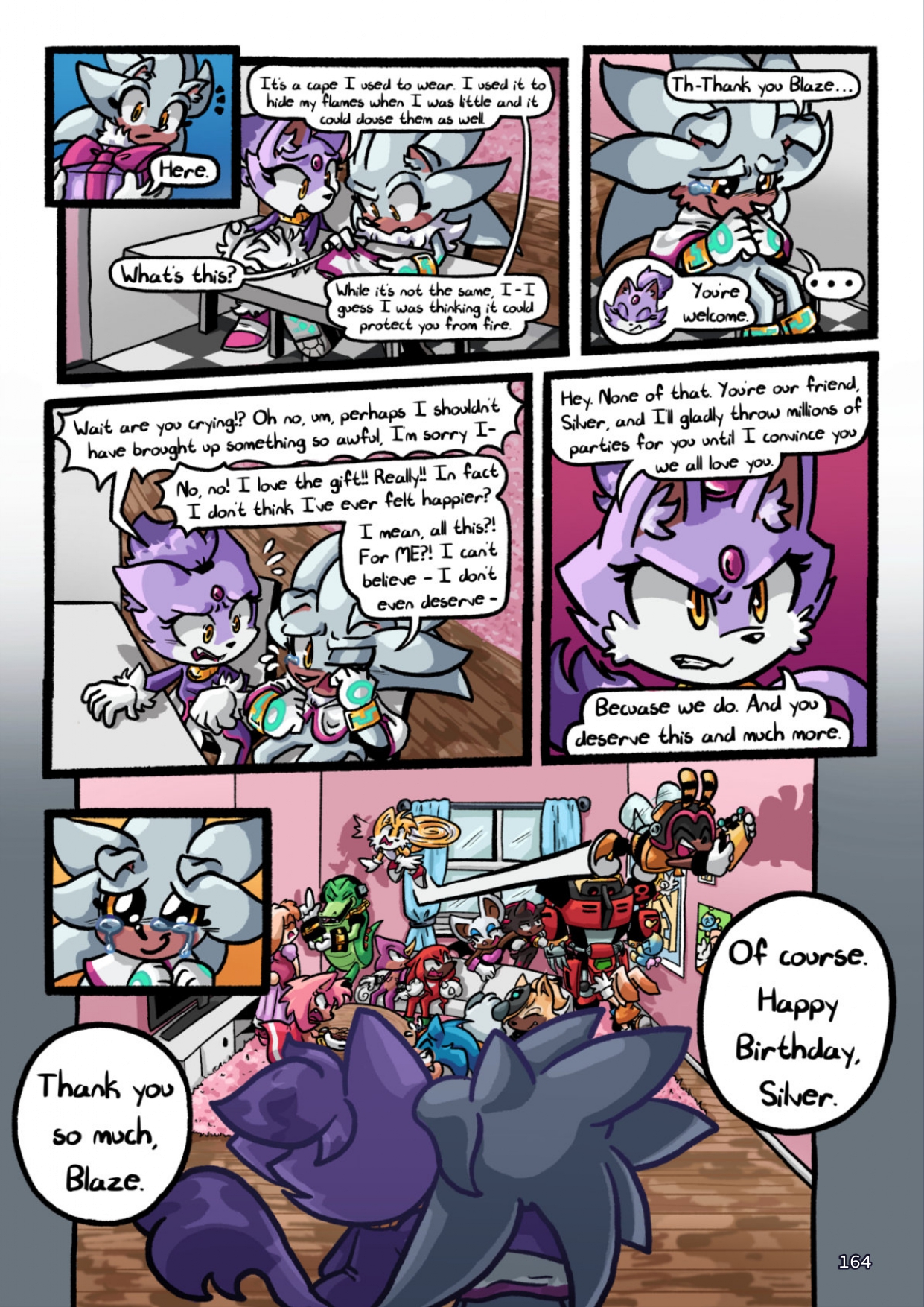 >>23574 Today we're covering a fanzine dedicated to Silver! Someone will be happy! This clocks in at 200+ pages but unfortunately most of it is fanfics and illustrations. There's still some comics so we'll cover those and a random weird comic thrown in at the end as well as the latest two pages of Sonic Boom Revisted! Anyway, this is Kaleidoscope Absolution! Try saying that three times fast! And if you want to check out the rest then give it a download! The design and presentation are nice and it's free!