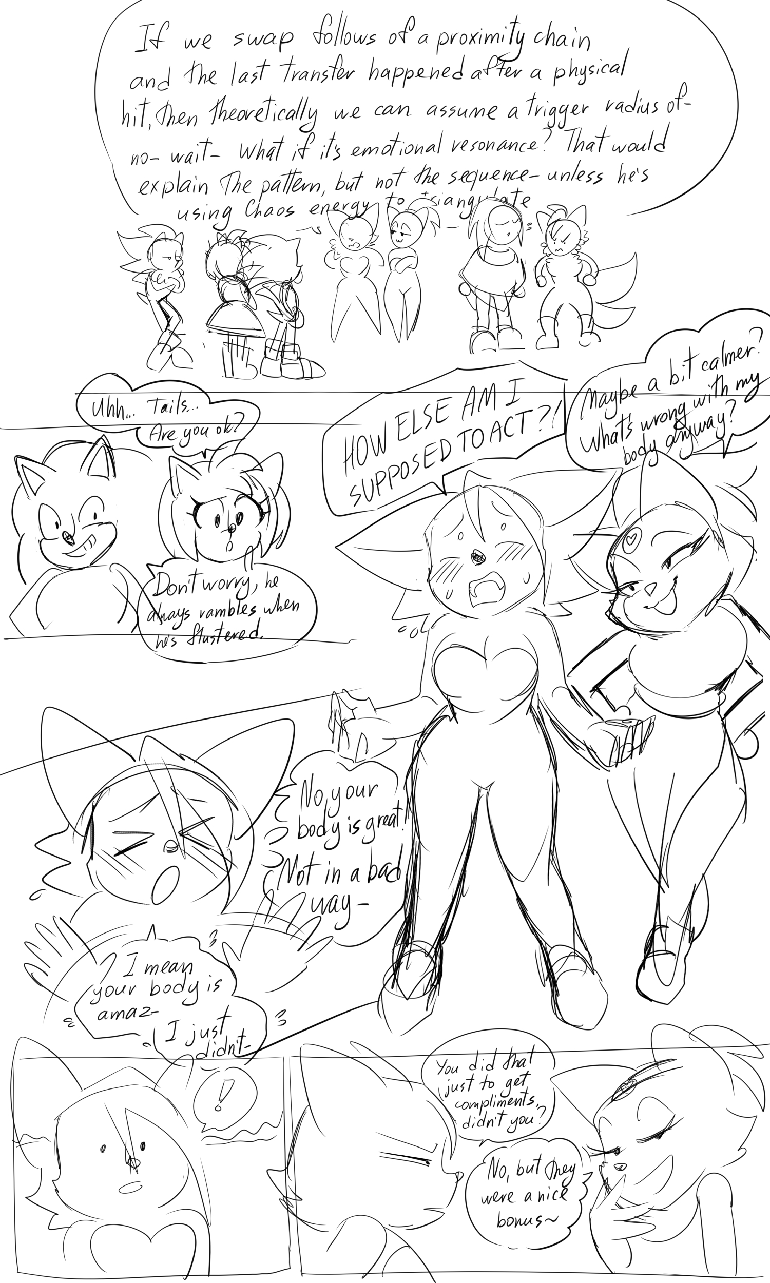>>23701 >I'm getting fetish vibes, but it's pretty tame so far I was gonna say "They're all in SWIMSUITS!" but then I realized that it actually IS pretty tame by Sonic fancomic standards.