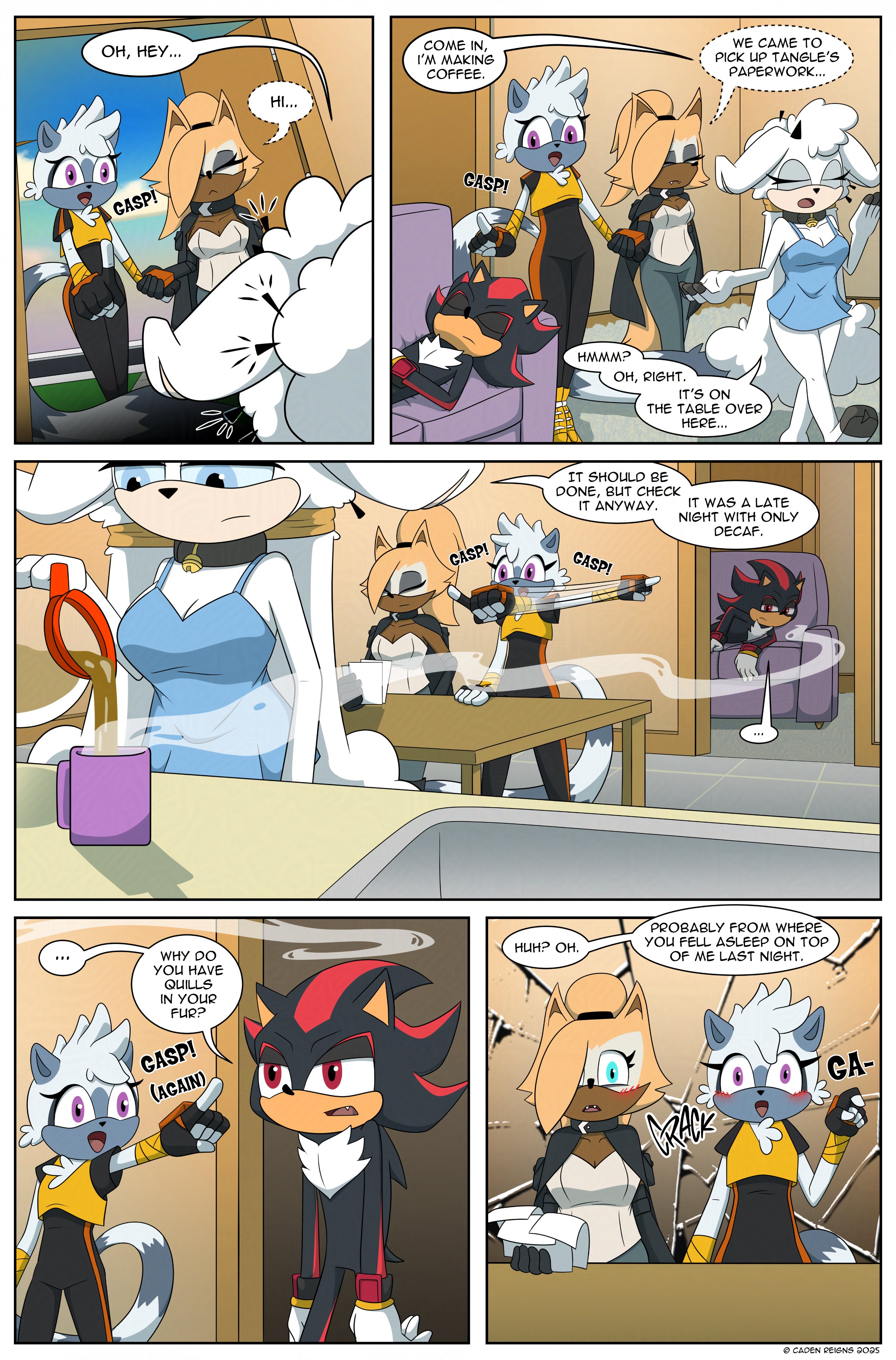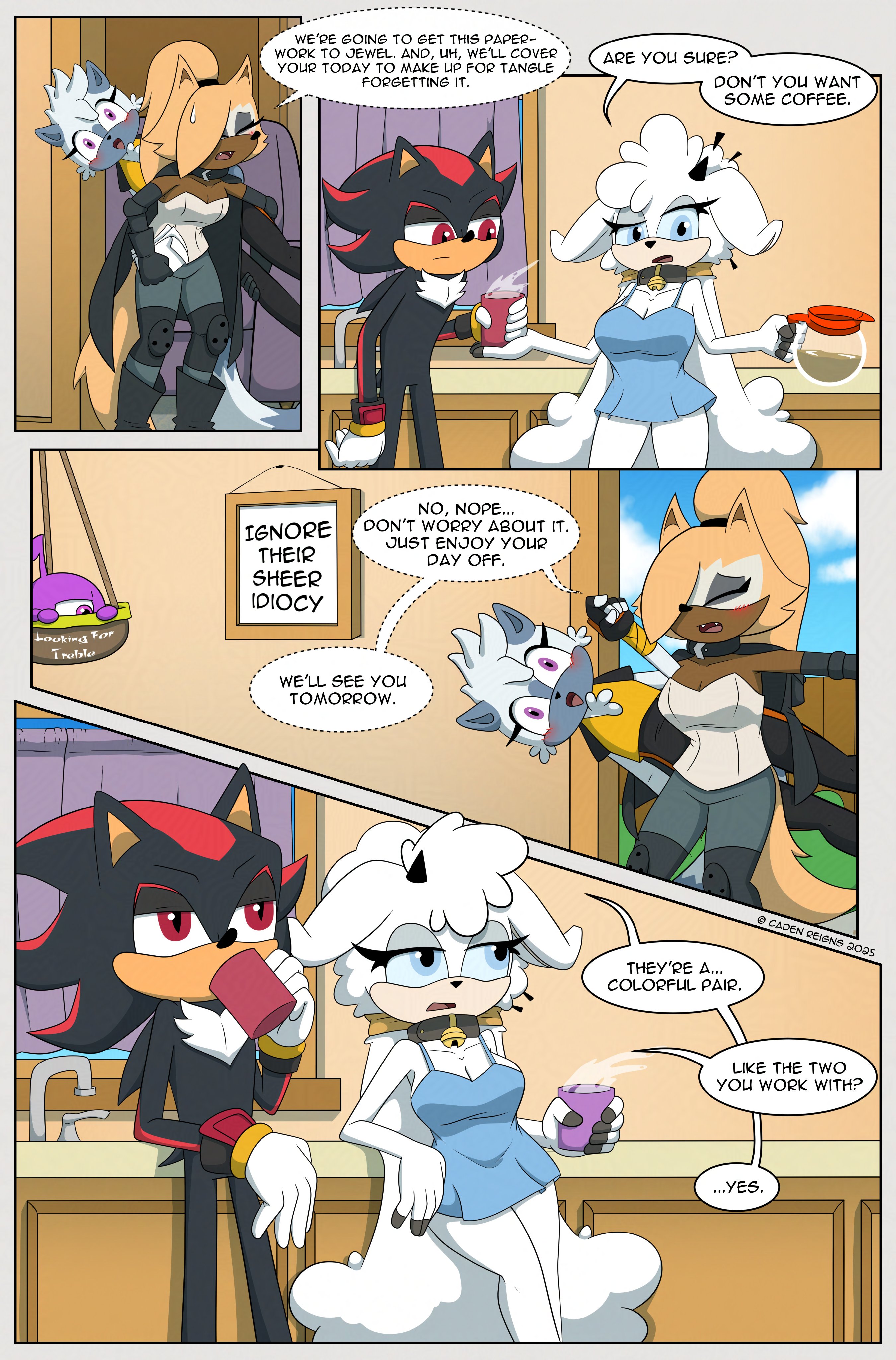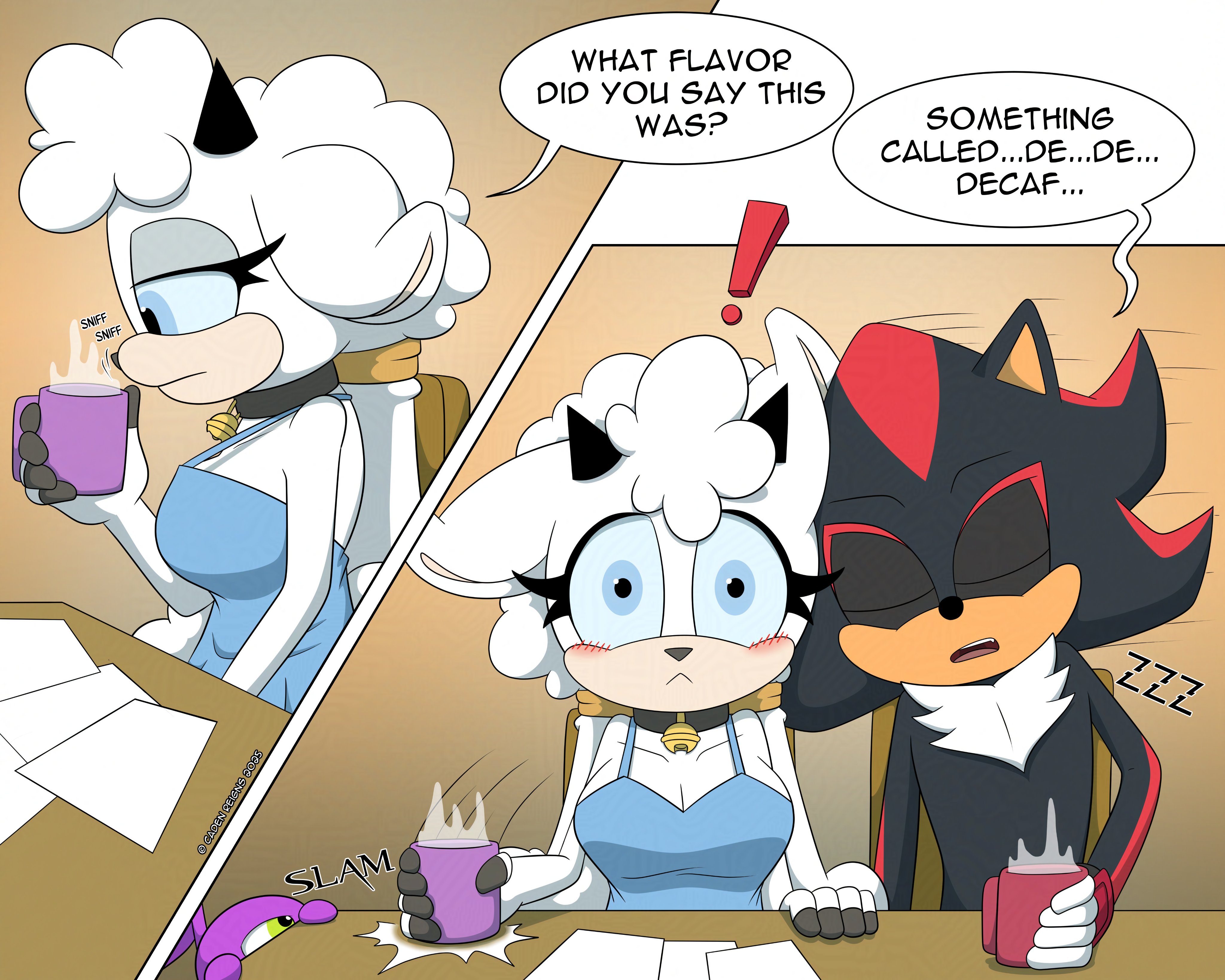This week the storytime is split in two! The first half here, the second half on /pco/! Let’s start with a series images and comics pairing Shadow with… Lanolin! Of course it’s titled after their canon shared interest. This is Coffee!