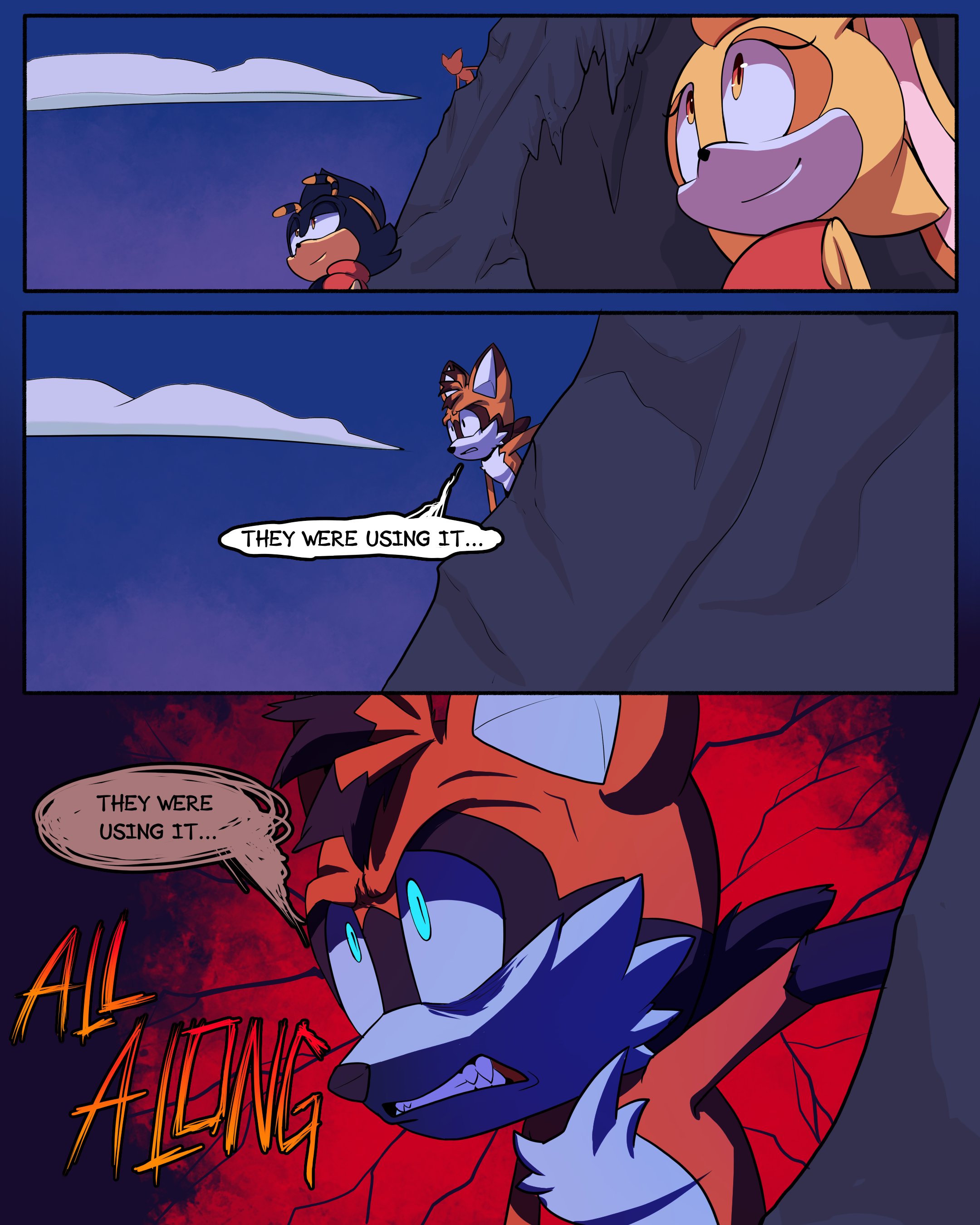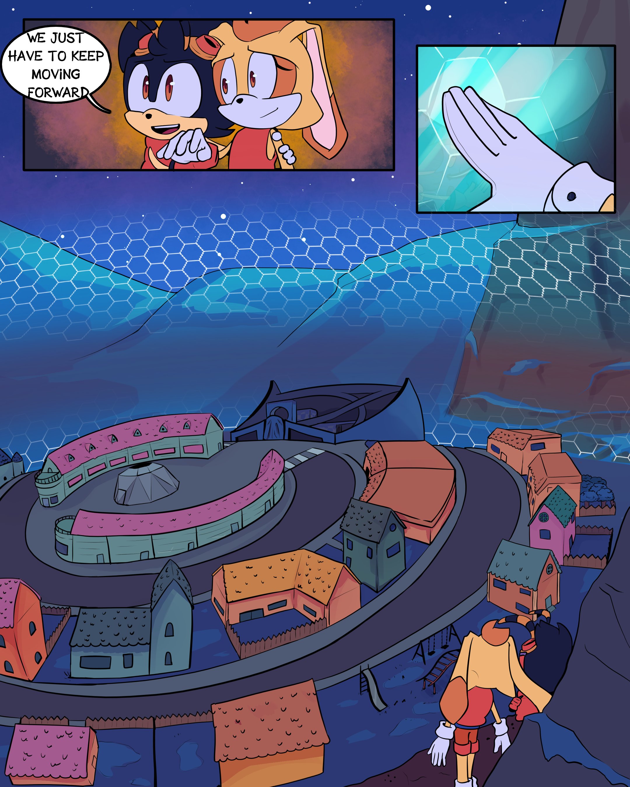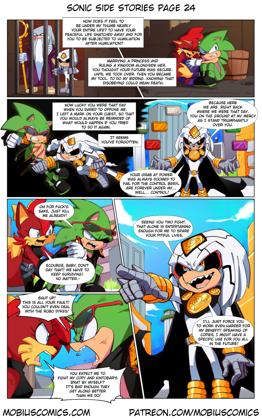 Now for a glimpse into the Scourge 3 & Finitevus arc! Things went a lot differently over there. Don’t ask me what all the differences are, I’m not scripting a story that won’t be shown in the comics. Just soak in the various things that are shown on this page. Just like with the grandfather guardians, I removed Ix’s long life. Someone should be able to guess who the grandfather is. In the Archie comics, the one that gave Scourge the scars on his body was Locke while fighting him and Rouge off. Also I never understood why the chaos emerald equivalent in the opposite universe was anarchy beryl. In my opinion control beryl is a more fitting name. And yes, AI Fiona and Belle are very close at this point. Which is more than what can be said about Fiona and Scourge.