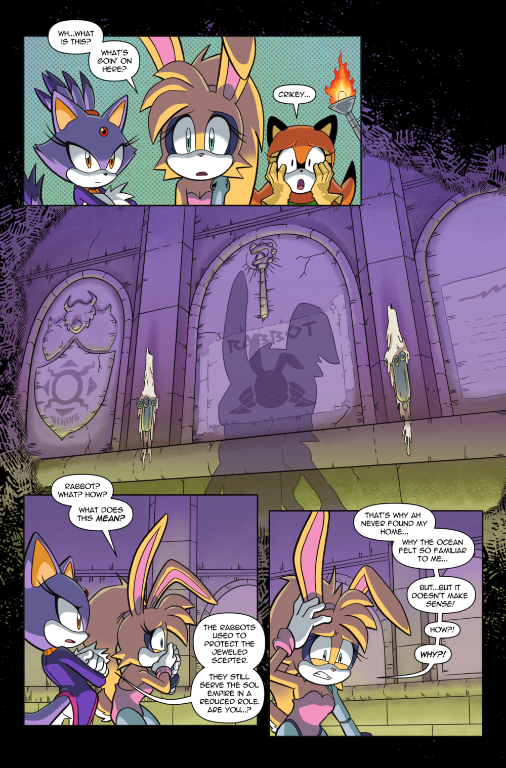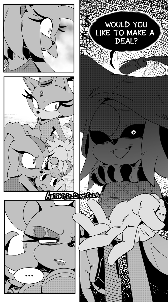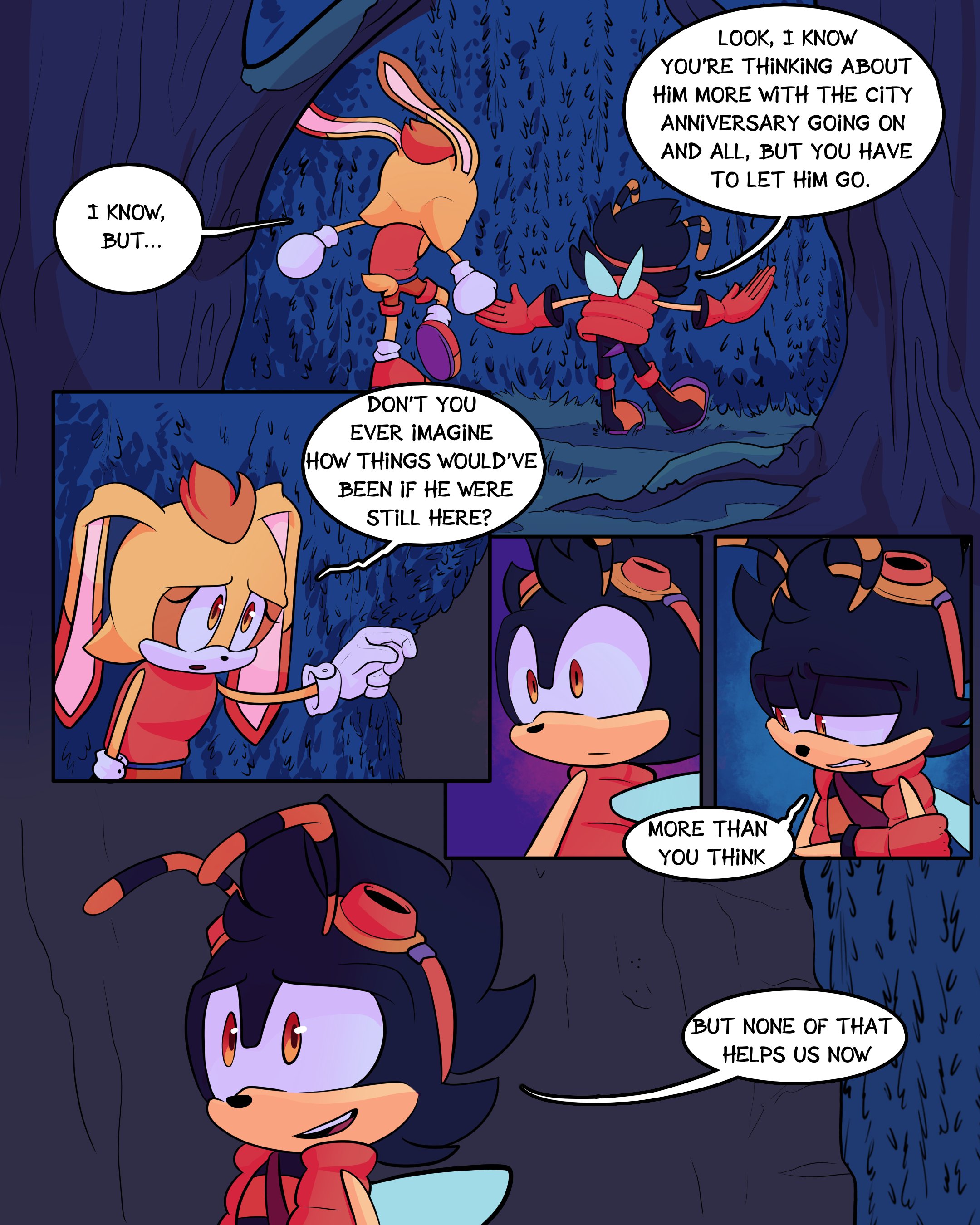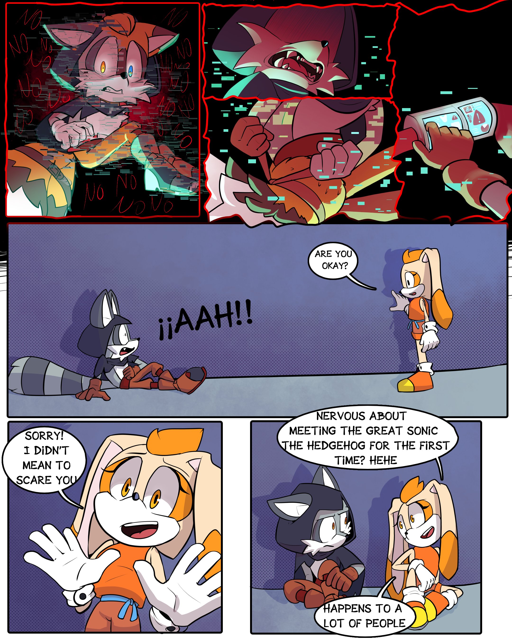 Now for a glimpse into the Scourge 3 & Finitevus arc! Things went a lot differently over there. Don’t ask me what all the differences are, I’m not scripting a story that won’t be shown in the comics. Just soak in the various things that are shown on this page. Just like with the grandfather guardians, I removed Ix’s long life. Someone should be able to guess who the grandfather is. In the Archie comics, the one that gave Scourge the scars on his body was Locke while fighting him and Rouge off. Also I never understood why the chaos emerald equivalent in the opposite universe was anarchy beryl. In my opinion control beryl is a more fitting name. And yes, AI Fiona and Belle are very close at this point. Which is more than what can be said about Fiona and Scourge.