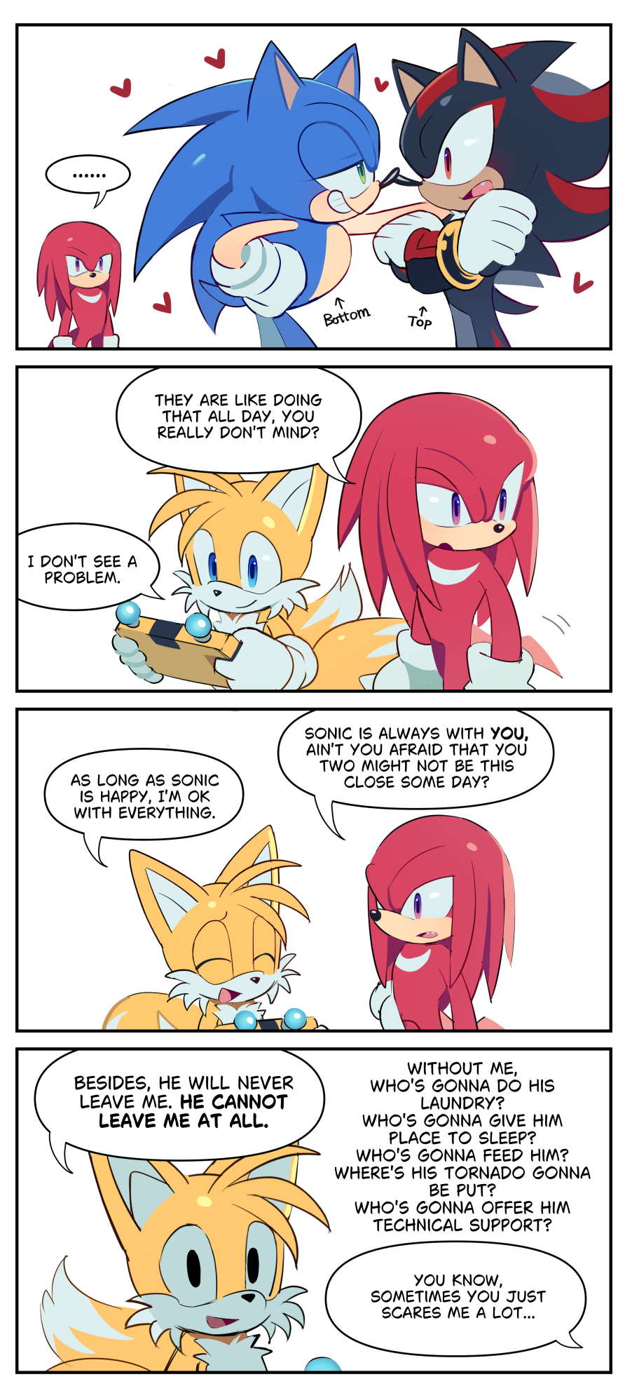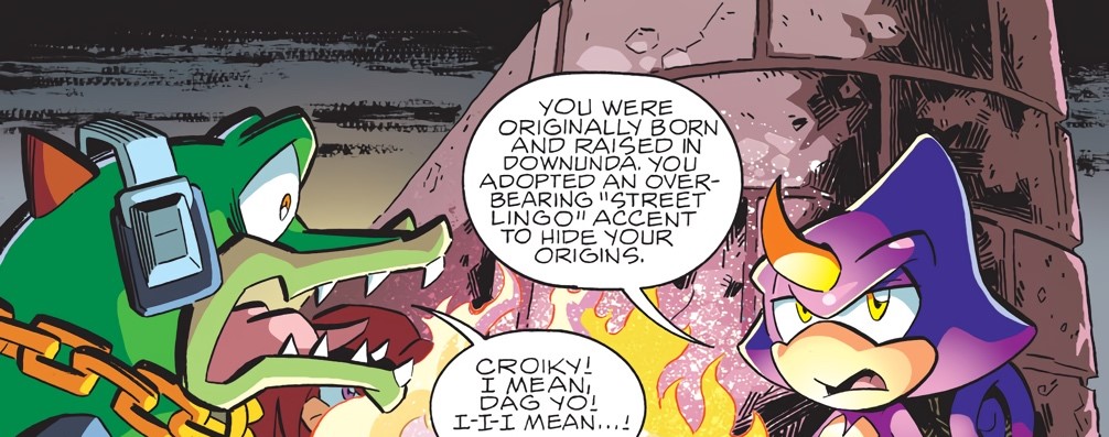 >pronouns I wouldn't have minded that so much, or NiteXDon, or TangleXWhisper, just so long as the cast went on exciting adventures and fought villains. Fleetway had the lez-ventures of Amy and Tekno, and it wasn't half as boring as IDW, even in the comic's "dark age" after Eggman took off. I mock "Genderqueer Silver" and the "LGBTQ High School AU," but the problem is the "High School AU" part, really.