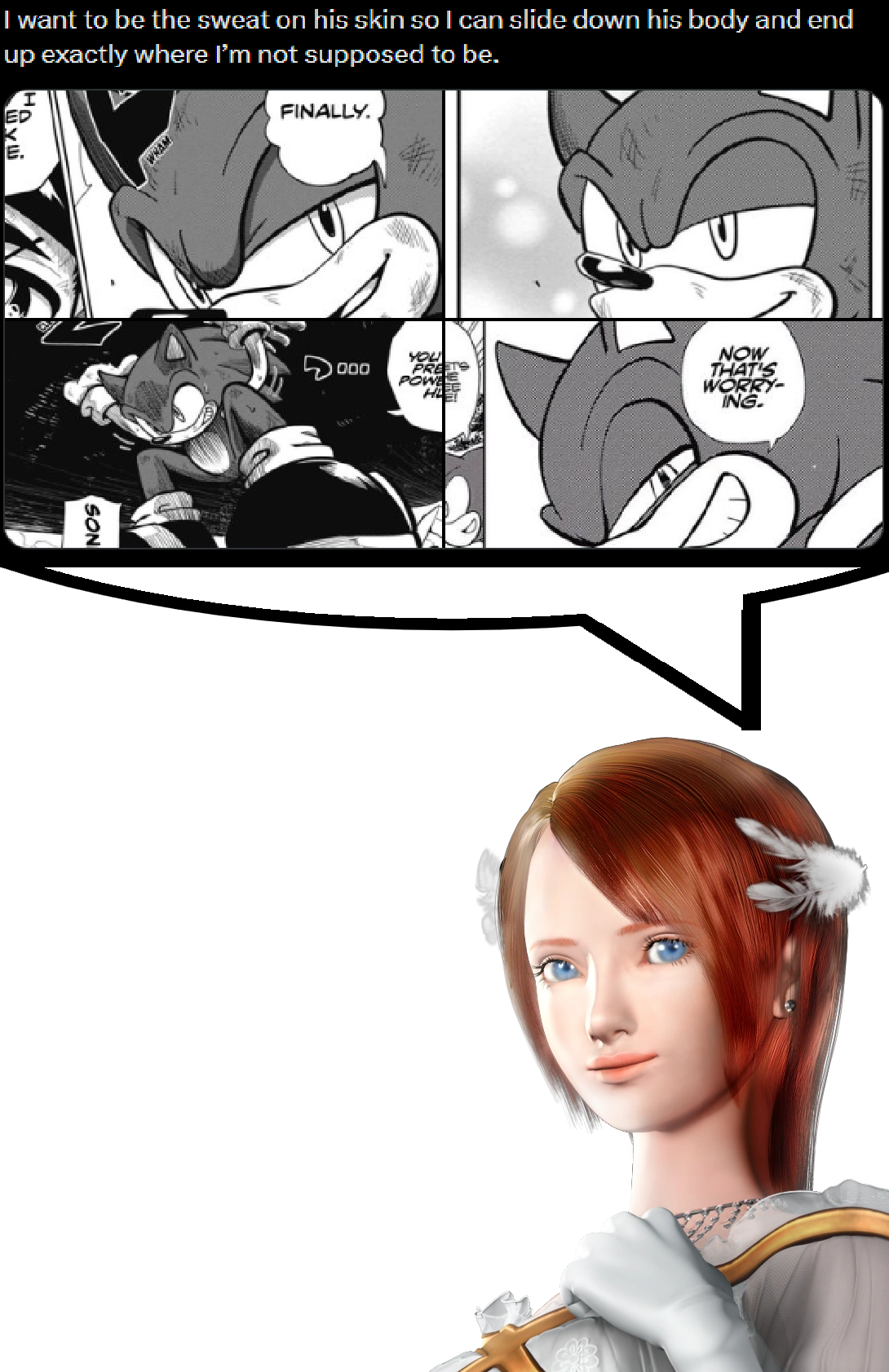 >>25217 The thing with Evan is that it's clear that she'd rather be writing some LGBTQ High School AU where Genderqueer Silver needs therapy and Sonic has to summon up the courage to ask Shadow-senpai to the prom. So whenever somebody asks her to write an action story, it falls flat on its face.