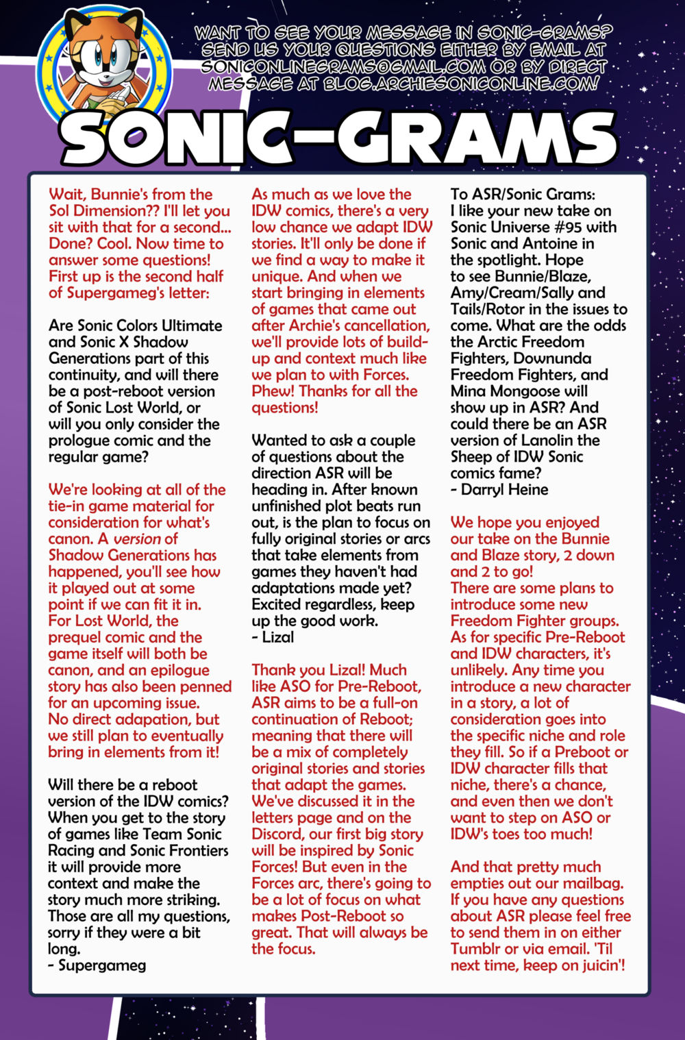 Sonic and the Freedom Fighters Fancomic: https://mobiuscomics.com Unofficial Ride Website: https://the-ride.neocities.org Archie Sonic Ride links: https://pastejustit.com/ym8ziu3v87