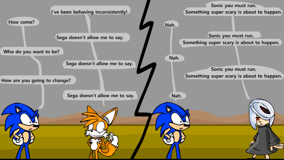 >>25194 Penders makes Shadow look like he has downs. Though I like the coloring. And Newton... As in Isaac Newton? Remember Isaac, the robot who looked exactly like Gamma despite being very old? Who lore dumped to Metal Sonic and implying an ancestor of Eggman would awaken. Then Ian went and said that was all bullshit lmao