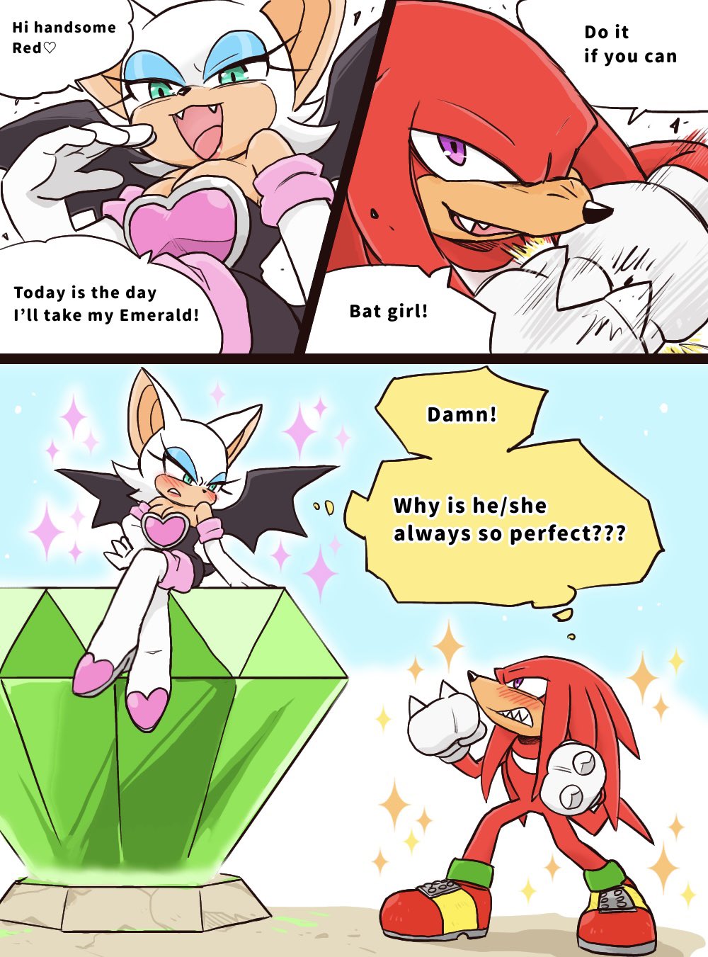 >>660 >>655 >One of these days you're going to be joking and then it actually happens in a comic. That's the goal; I'll manifest SonKnux into reality! >Closest was the Archie Sonic X comic. Sonic really wanted to spend time with Knuckles. It was the same in Sonic X as well. Sonic and Knuckles acted way more like a couple than in any other continuity. You'd be forgiven for thinking they were deliberately highlighting the similarities between Knuckles' relationships with Rouge and Sonic