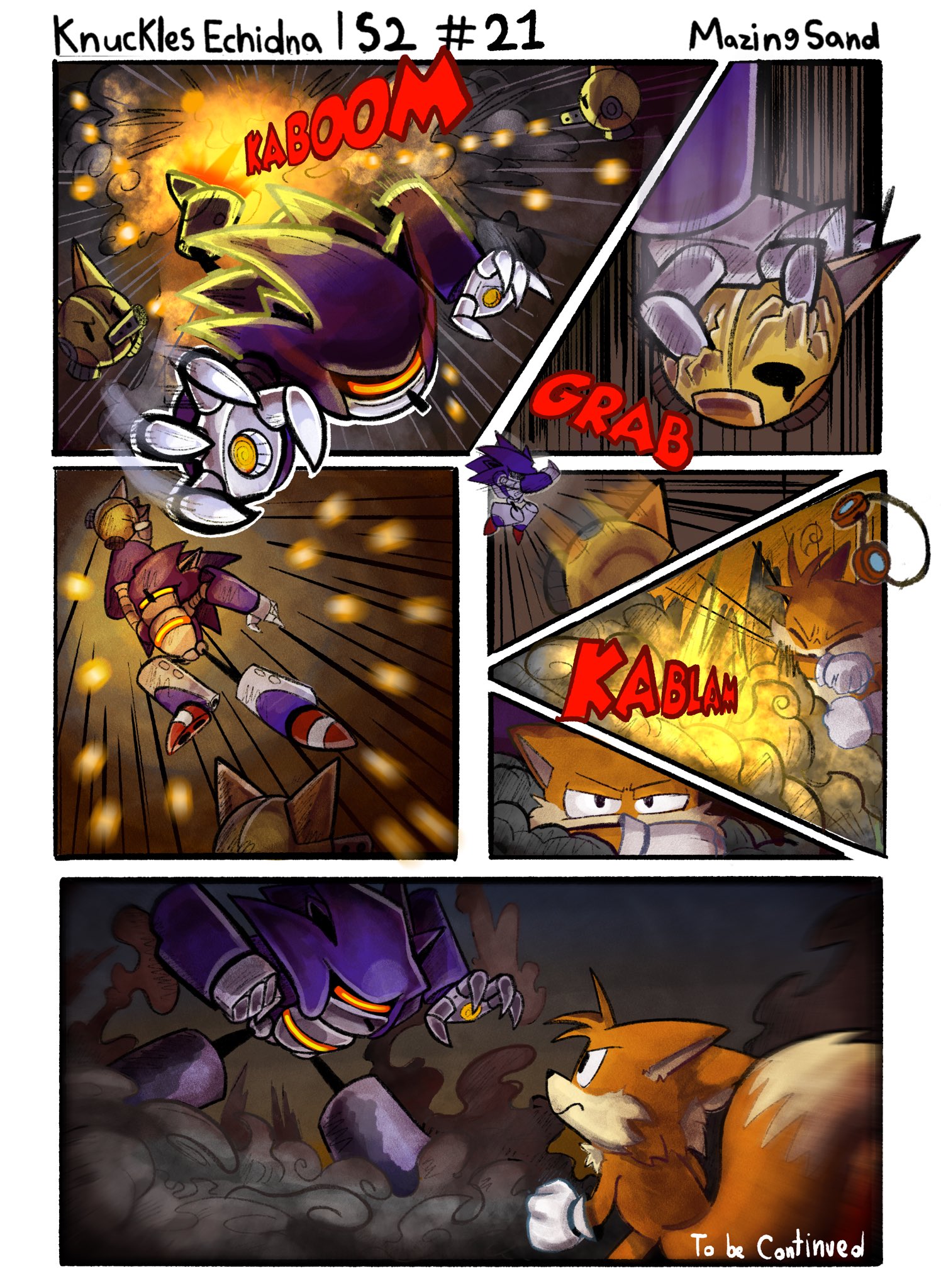 >>1428 lmao, I ship it! >>1430 At least it worked for her in SA1 with Gamma >>1431 Love the background OCs. Wasn't expecting a Cerberus >>1443 The integration of the level backgrounds is a nice touch >>1448 Now that's a cool twist on CD and the OVA! >>1450 Sol's back! >>1457 Just wanted to say your comic's fantastic! We actually covered the previous chapters a few years ago if you're interested to see what our thoughts were: https://the-ride.neocities.org/comics/2022-08-19-sonic-pandemonium/