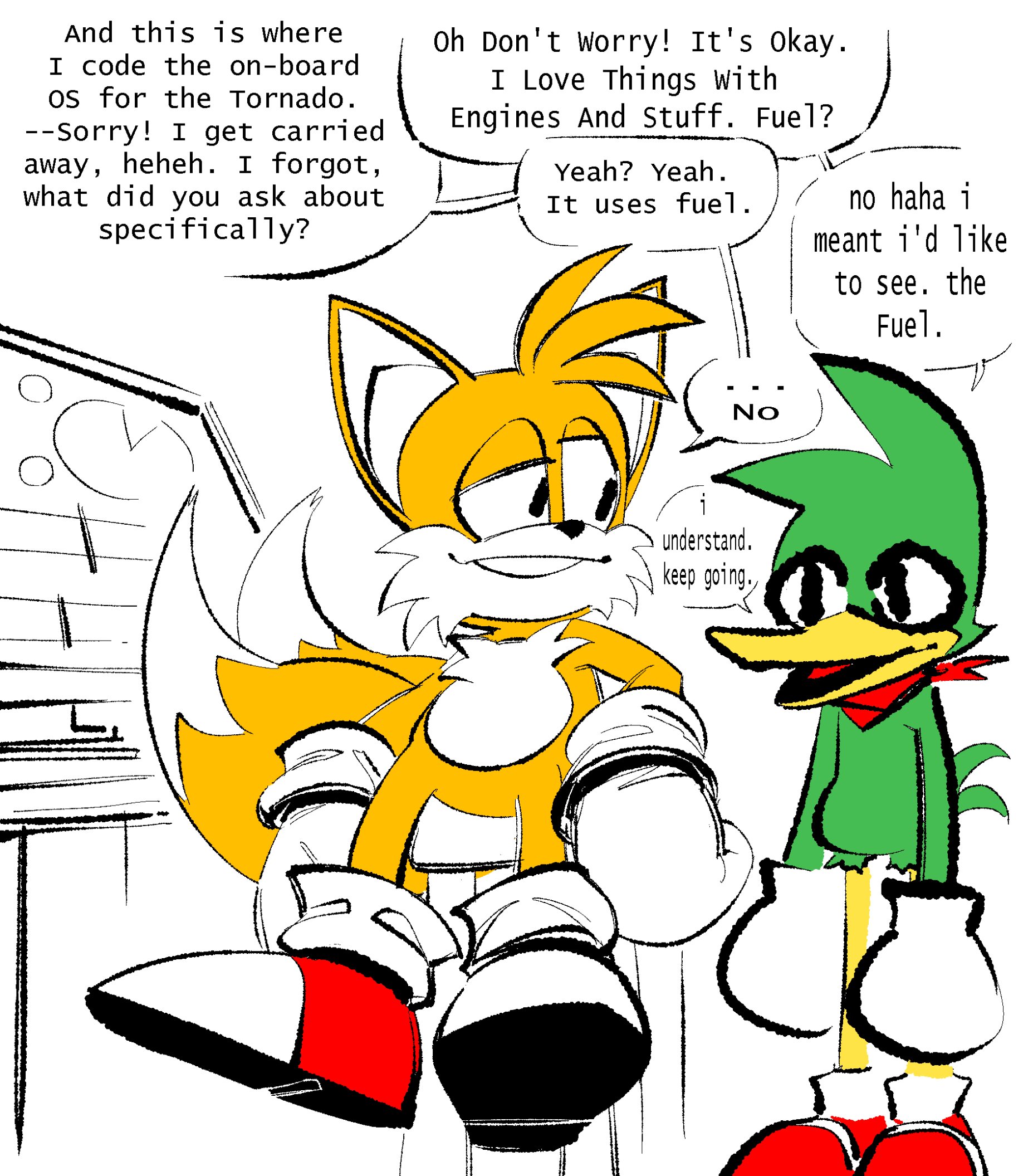 >>6494 Thanks! It's a lot of fun splicing in the text to speech voices and surprisingly straightforward to paste in the images >>6496 I was thinking Strong Bad, but that works too >>6502 At least he's having fun >>6504 >>6511 People like to drag on Knuckles for being gullible but Silver's legitimately special needs. A 5 minute conversation with the most evil looking mouthless hedgehog and he's all ready to travel through time and assassinate the planet's most famous hero >>6505 To be fair, our favorite schizo is also known for shitting up death battles threads so it still could be him. Dude spends a terrifying amount of time on 4chan, hence why he ended up becoming a janny >>6507 Just swap their colors between brown and orange between panels, that way everyone gets their preferred color! >>6509 I really have to play that some time >>6512 Boo! >>6513 Honestly, I'd like Blaze to get her own squeeze that's from her own dimension >>6514 He's surprisingly suave! There's always the Tamers thread if you're looking for more Bartleby. For my favorite obscure characters, I'd pick Turbo from Fleetway and my husbando Remington from Archie