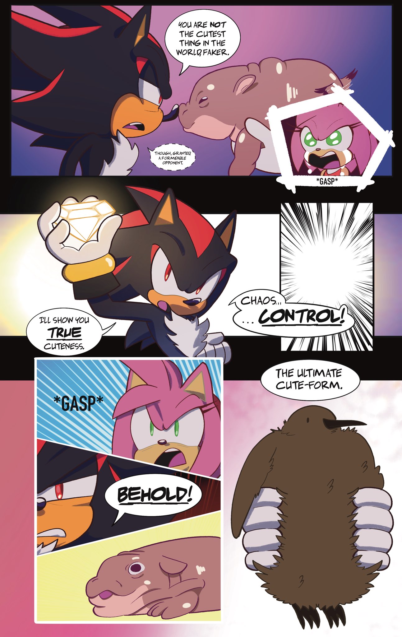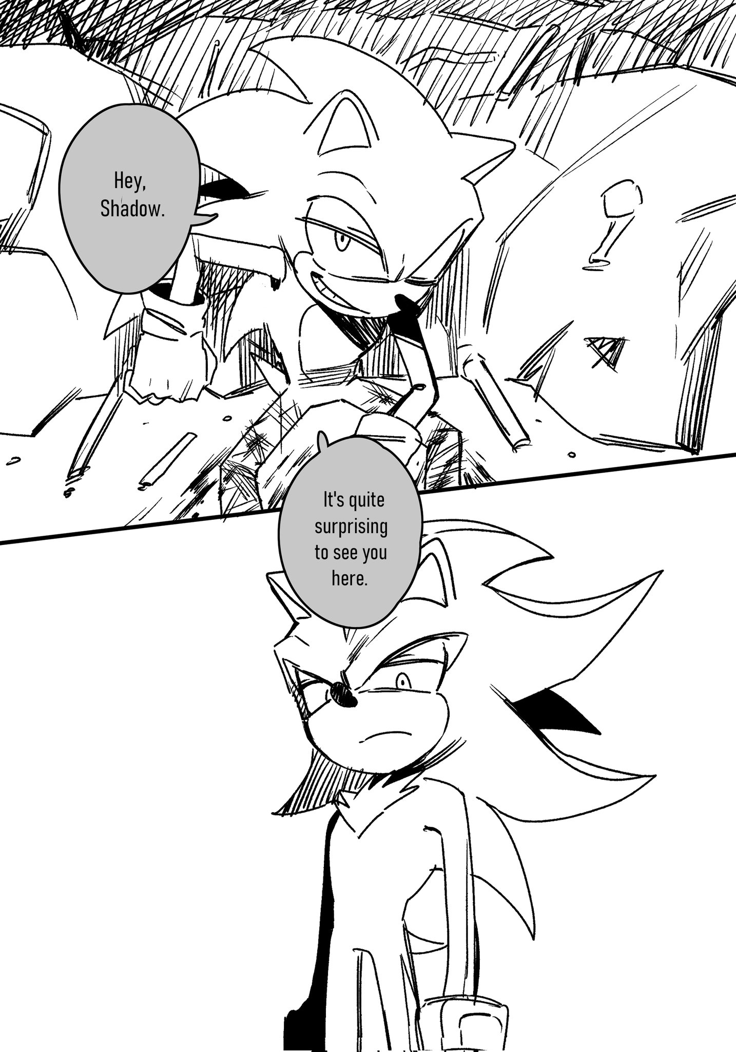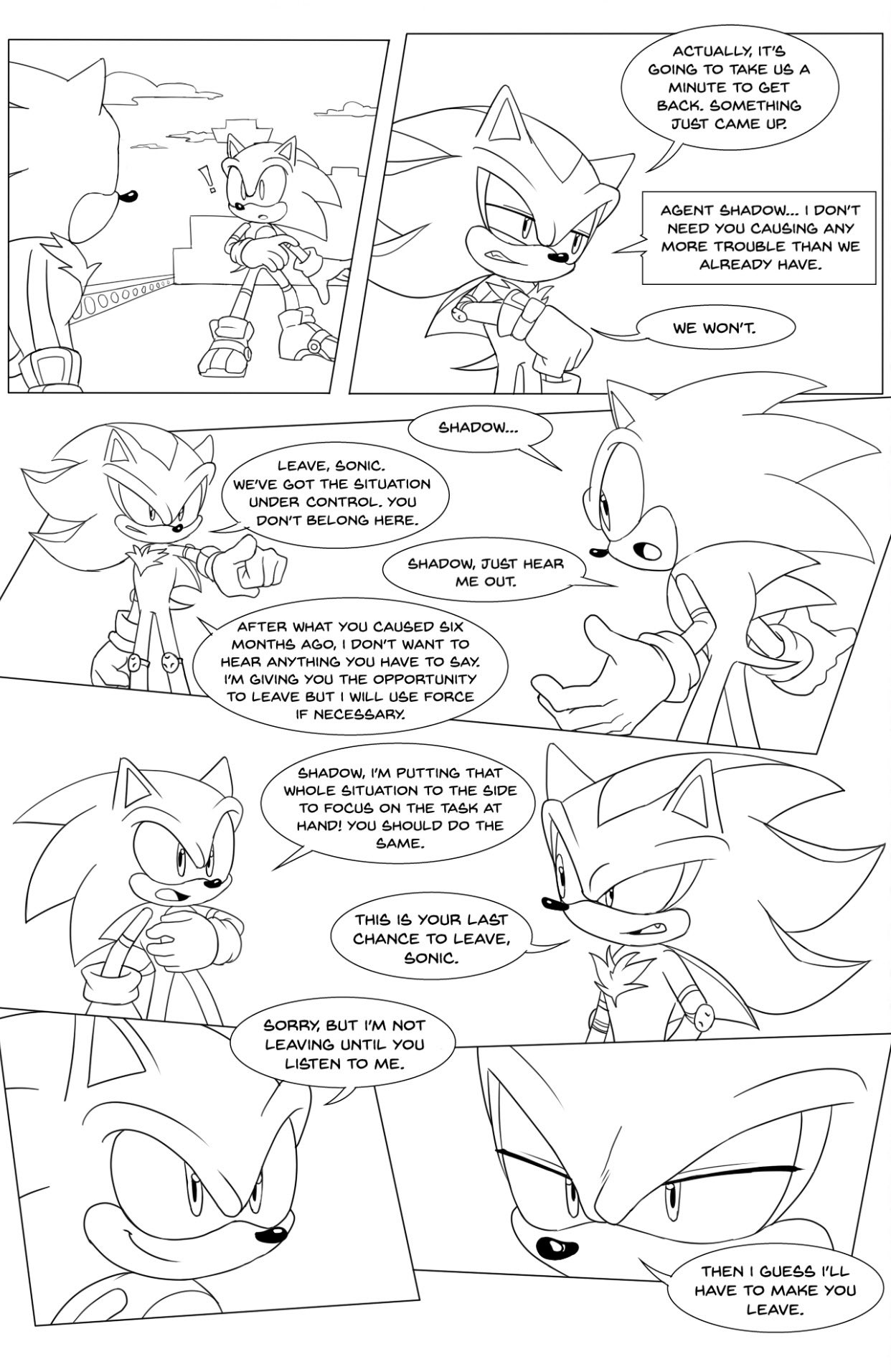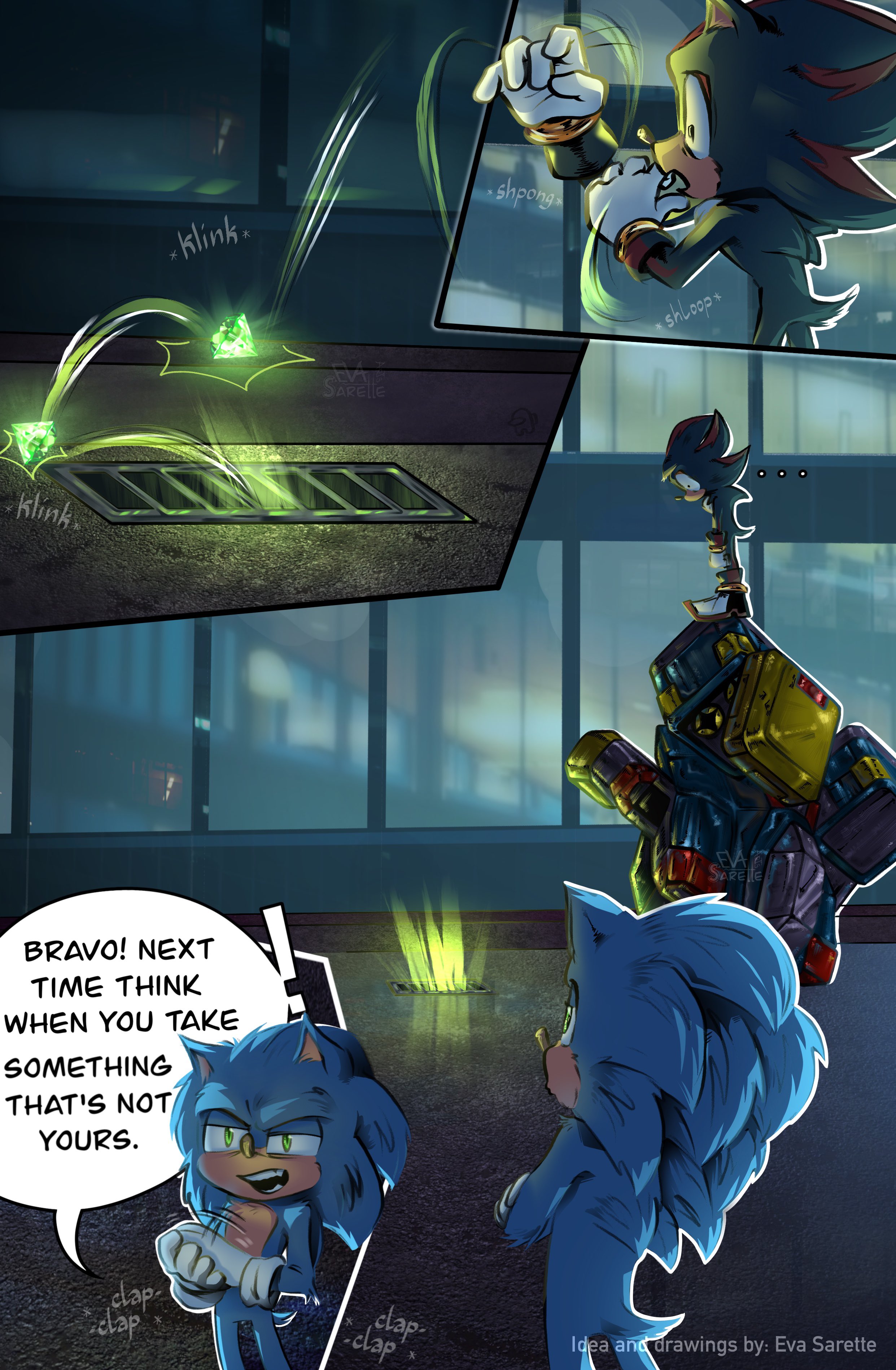 >>9519 >>8159 We start the second part of KrazyELF’s Sonadow comic that is strangely the least Sonadow thing she’s done. Last time, Eggman has been busy stealing the Master Emerald and kidnapping Amy and Cream for his diabolical plan. It’s up Team Sonic (plus Vector) and Team Dark to save the day! But they better hurry, they’re on a time limit!
