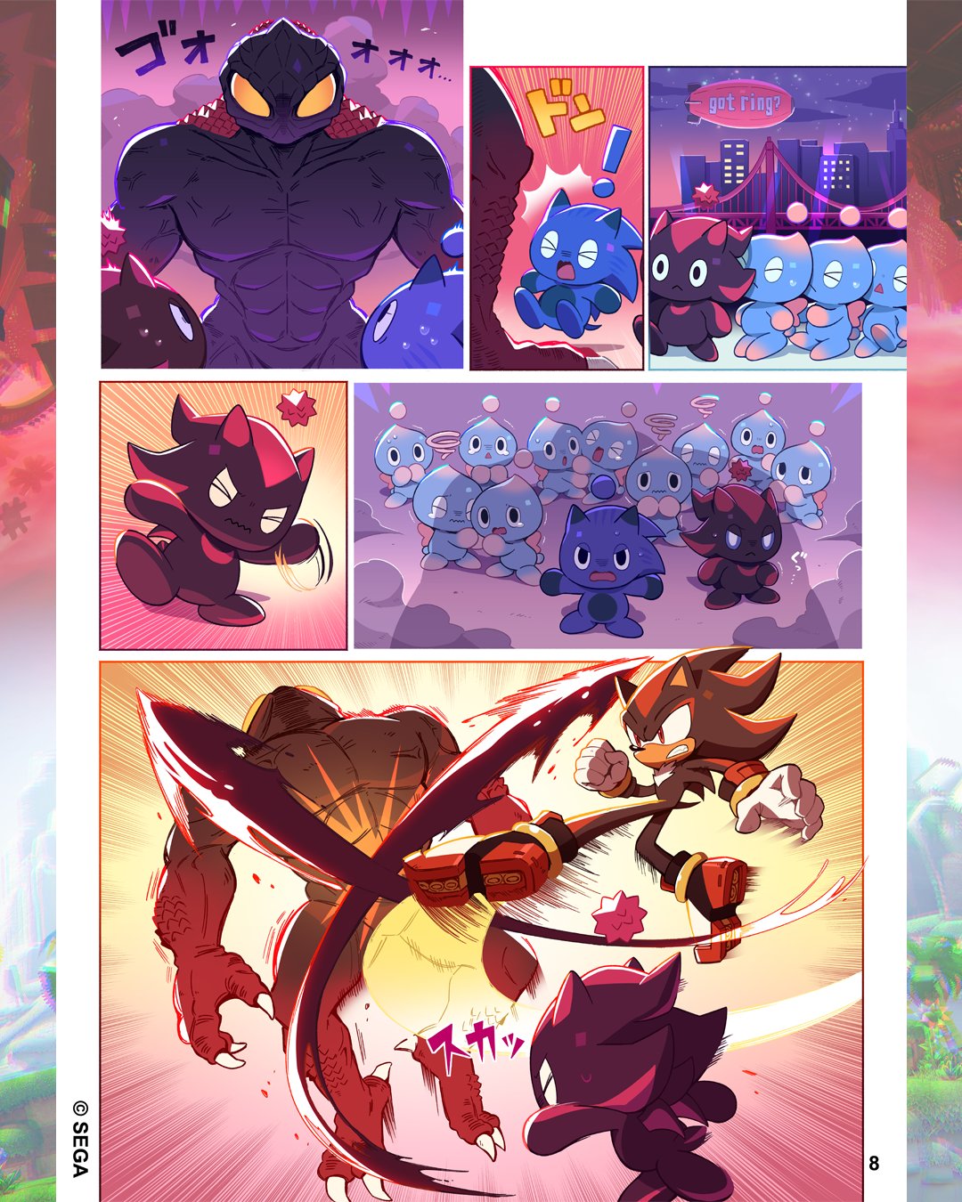 >>9519 >>7602 We continue The Great Chao Rescue! Last time we left Shadow and Amy in the process of rescuing the chao abducted by Eggman! What's his purpose? Will our shipped heroes be able to stop him? Let's see what this batch of pages has in store for us!