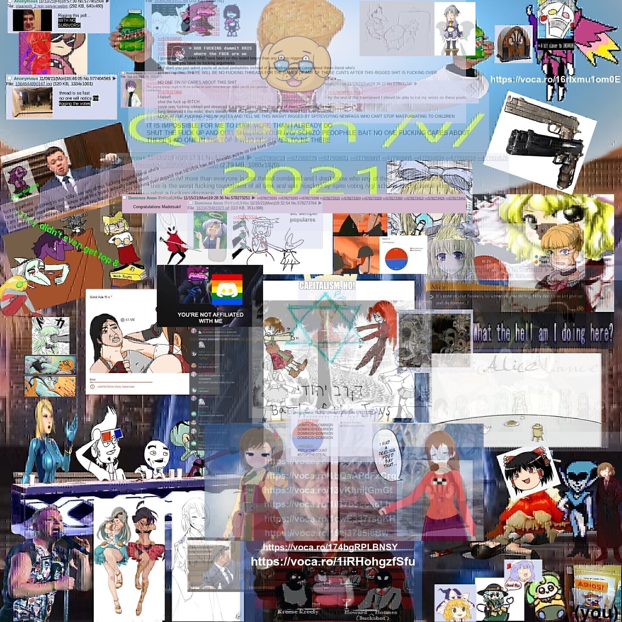 This board is for hosting tournaments and other organized competitions, be it either events, contests, or anything where a winner must be determined through votes or otherwise. Just for this board, image duplicates are enabled and the bump limits are set extra high. Roleplaying is encouraged, unless event hosts ask otherwise.