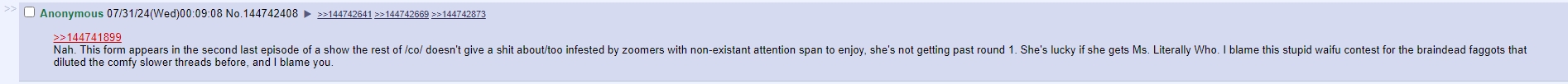 making a new thread early so your favorite character can keep being the OP is homestuckfag-tier behavior.