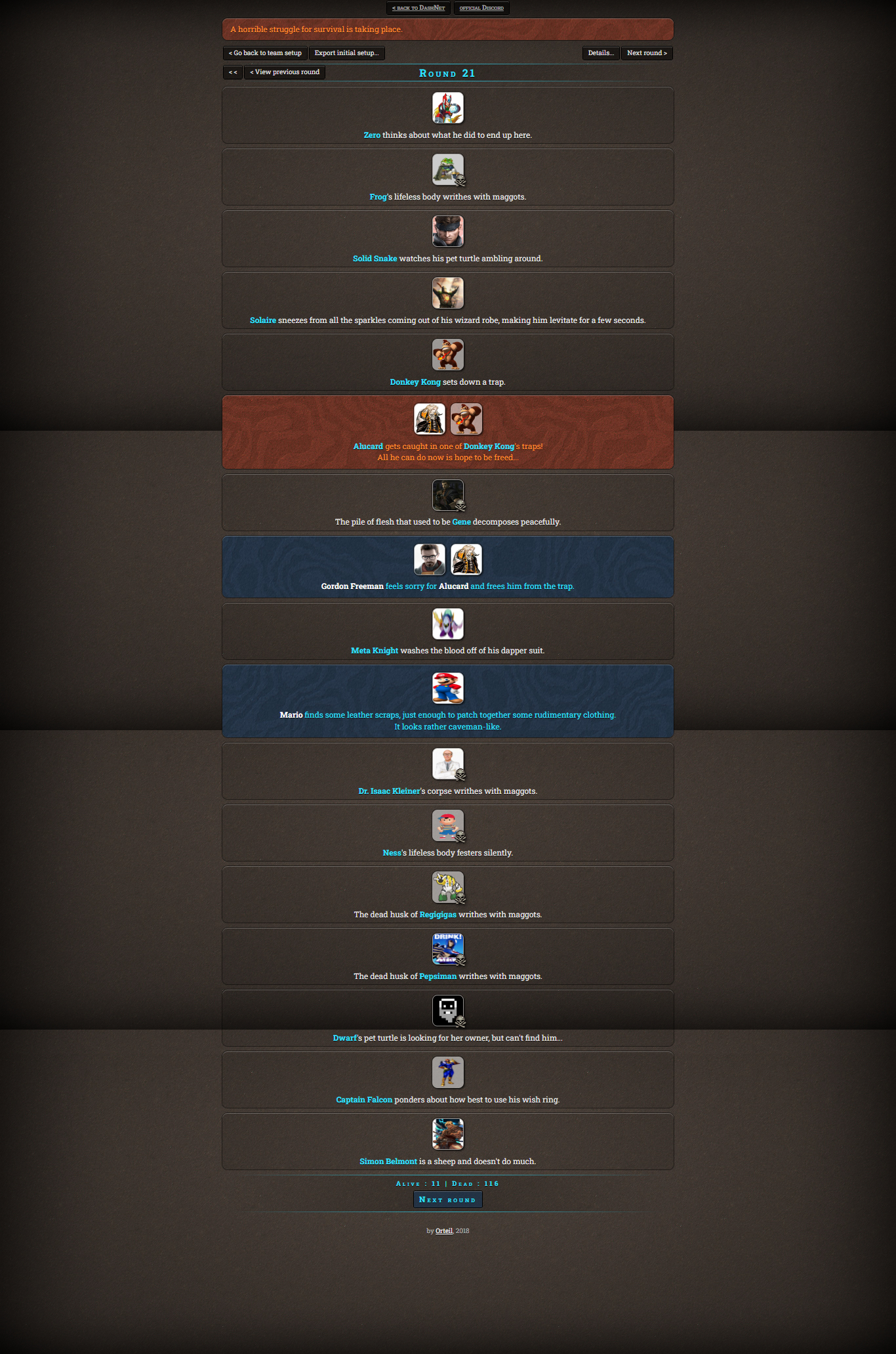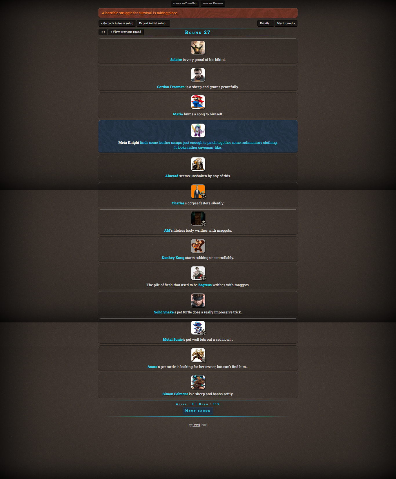 >The last character standing alive is the winner
